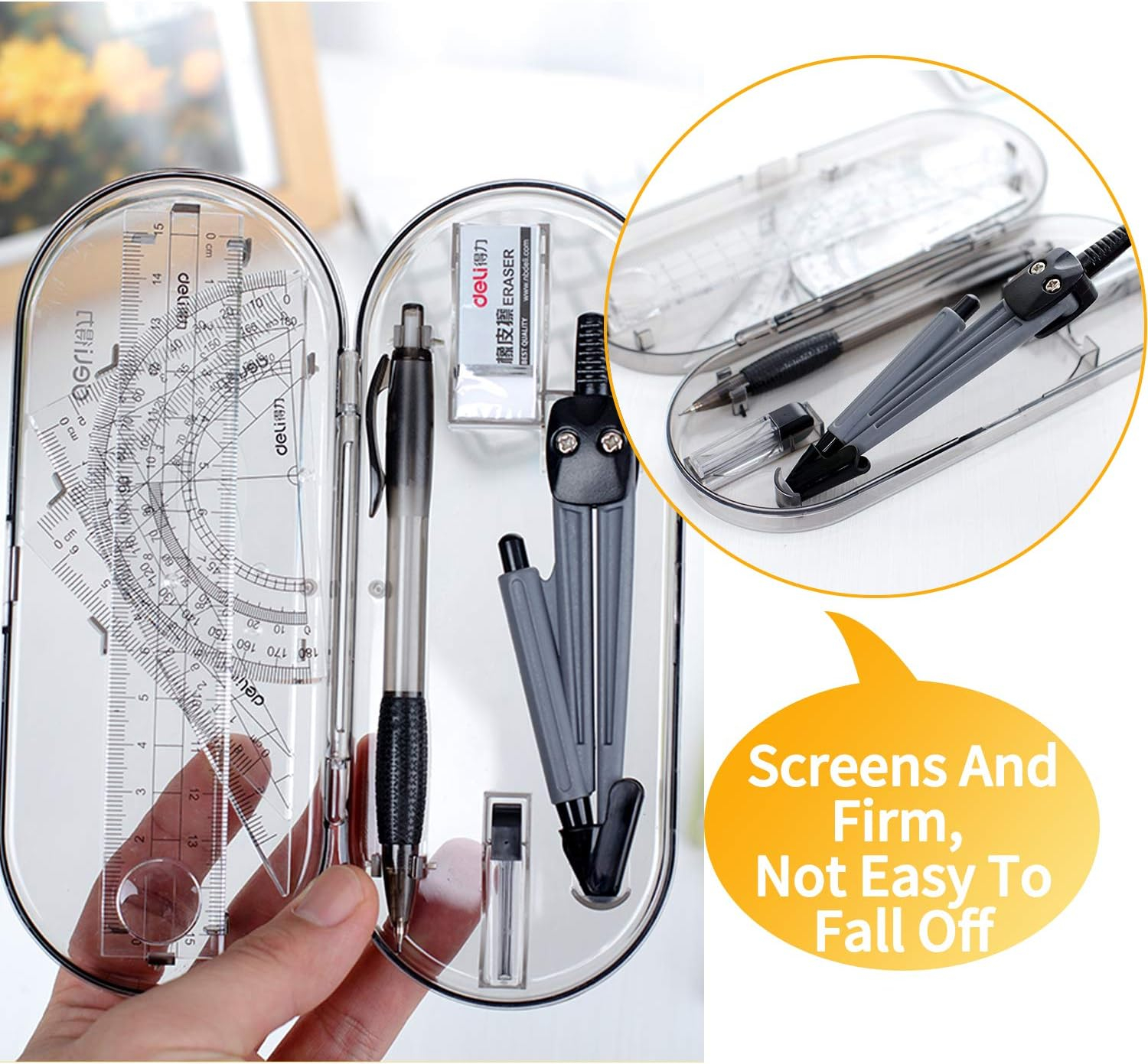 Setul de papetărie de examen este durabil, toate uneltele sunt plasate în interior pentru transport și depozitare ușor. Plasticul vezi prin carcasa creionului protejează și păstrează uneltele într-un singur loc în orice rucsac sau birou. O alegere convenabilă pentru profesori și studenți.