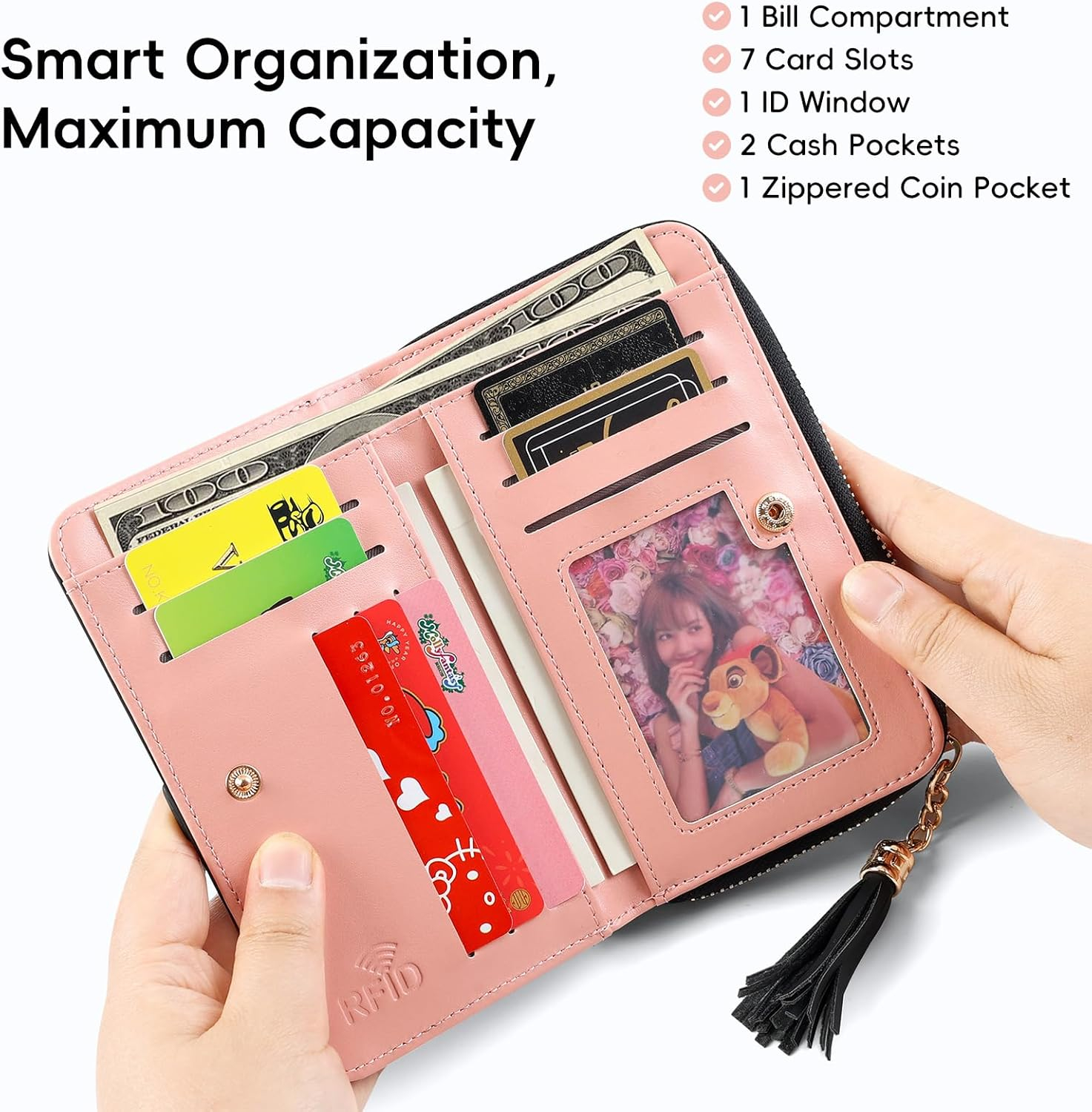 Manoperă de înaltă calitate: cusături stabile, fermoar durabil, piele elegantă PU și un pandantiv decorativ cu ciucuri face ca acest portofel pentru femei să fie un tovarăș elegant și de încredere