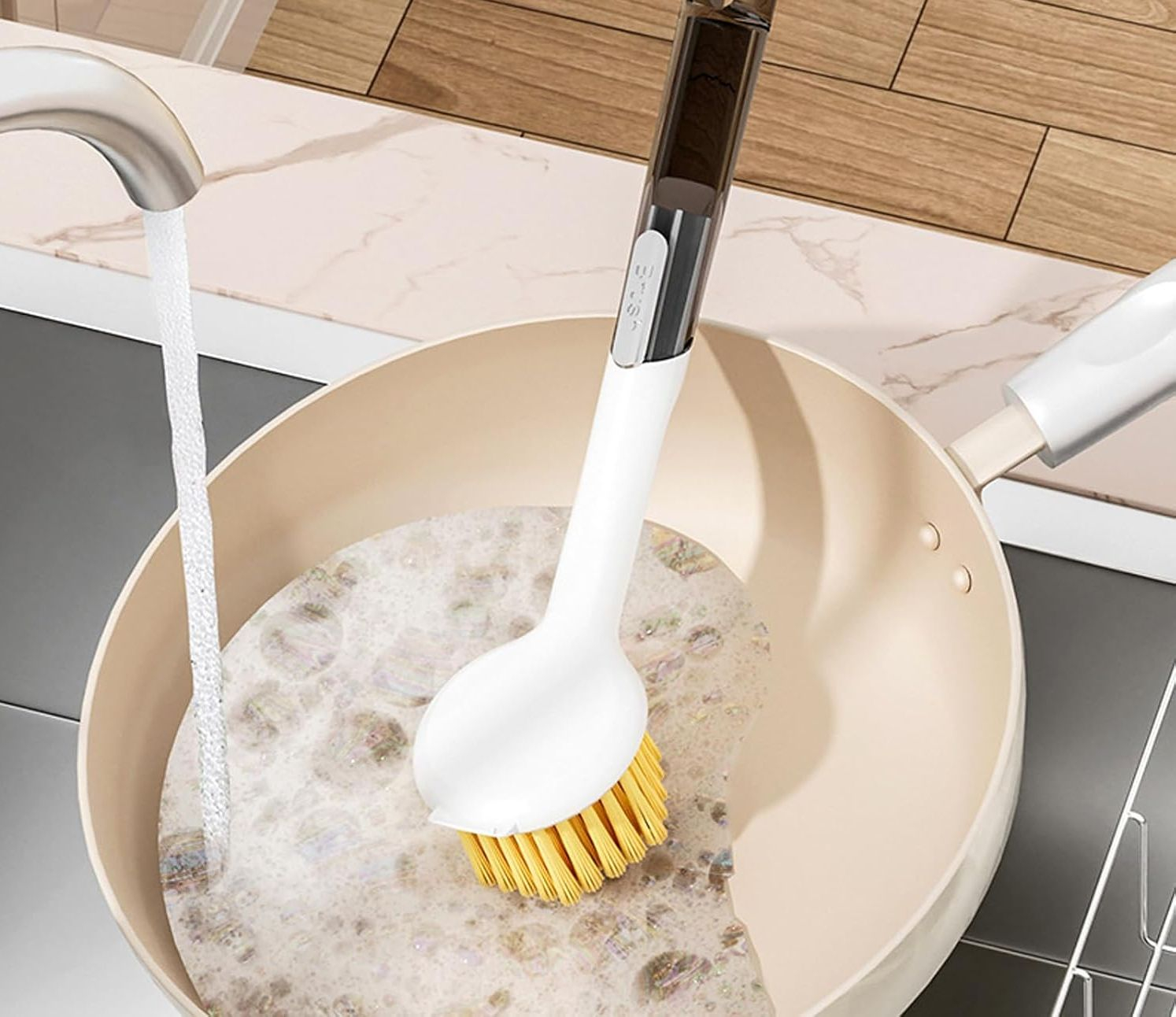 • Periile noastre de vase dure oferă performanțe excelente de curățare și elimină eficient reziduurile de grăsime din tacâmuri, coapte pe pete negre din vase de gătit, murdărie încăpățânată din chiuvete și fisuri, asigurând un mediu curat și igienic. "Vă rugăm să rețineți că curățarea cu o perie nu este recomandată dacă suprafața tigăii este acoperită."