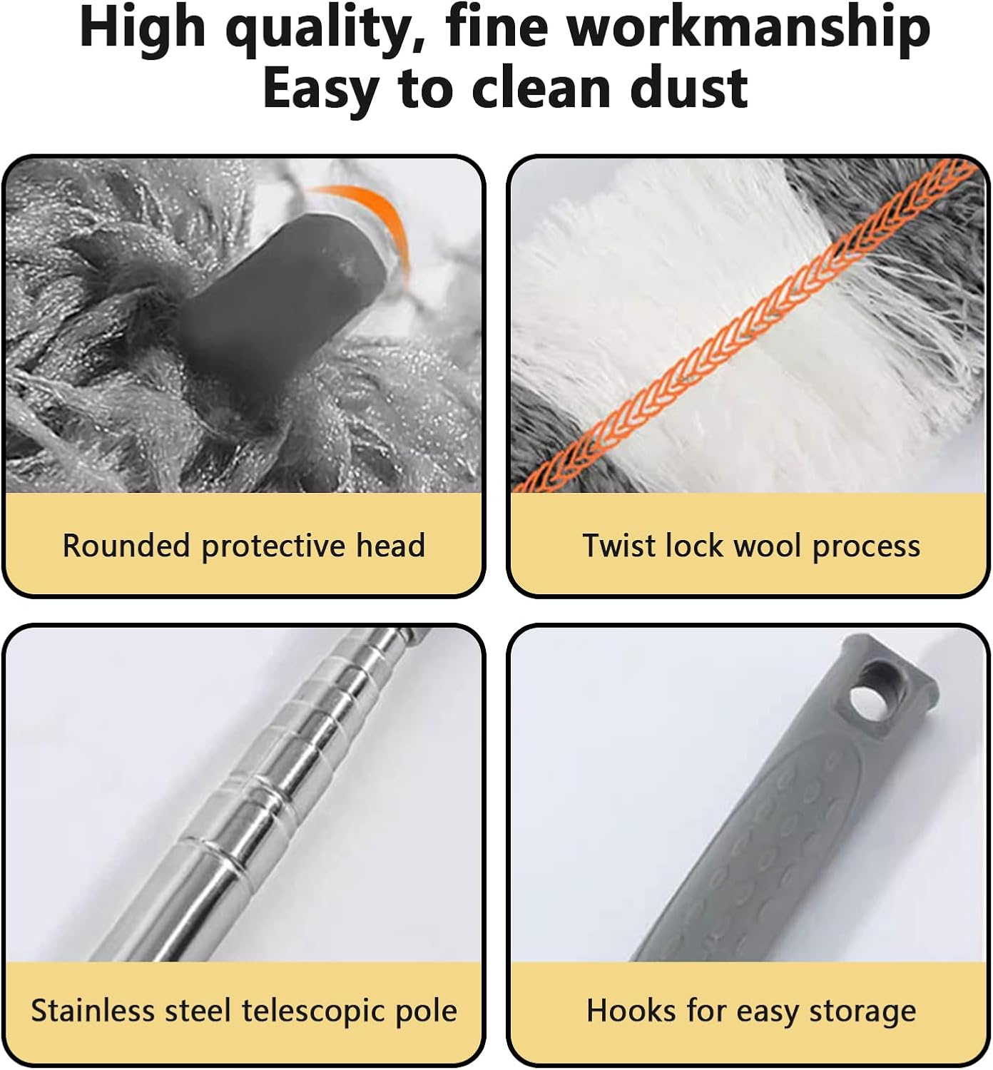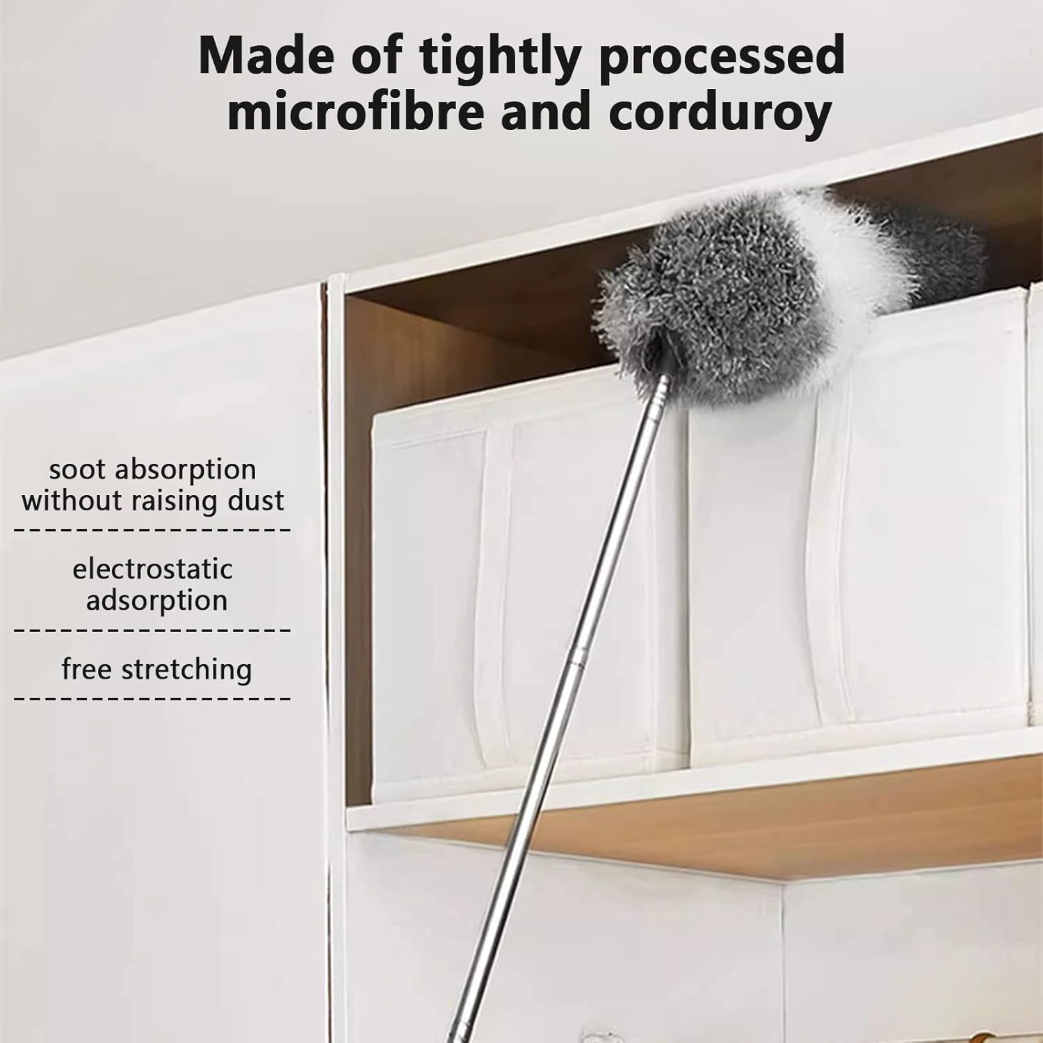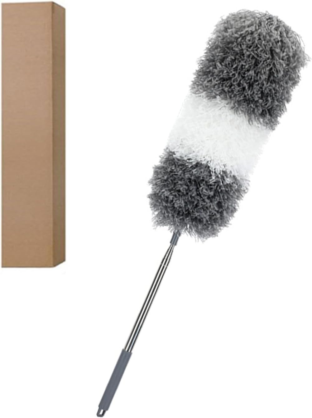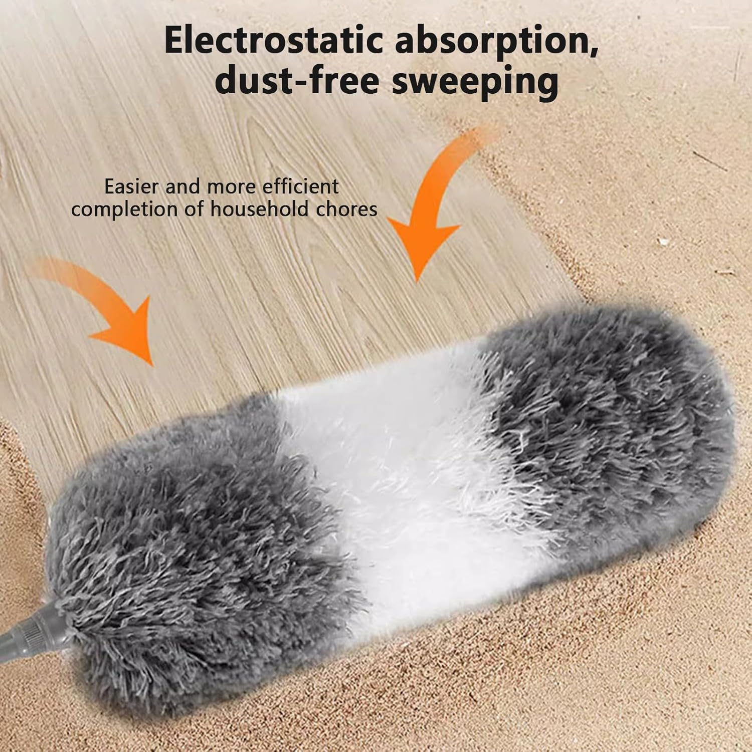 Material de înaltă calitate: perie de praf din microfibră, fabricat din microfibră și chenille prelucrat bine, proces de blocare răsucire, cu adsorbție super electrostatică, fibre moi și praful telescopic pot fi îndoite în orice unghi pentru a curăța colțurile înguste și locurile dificile.