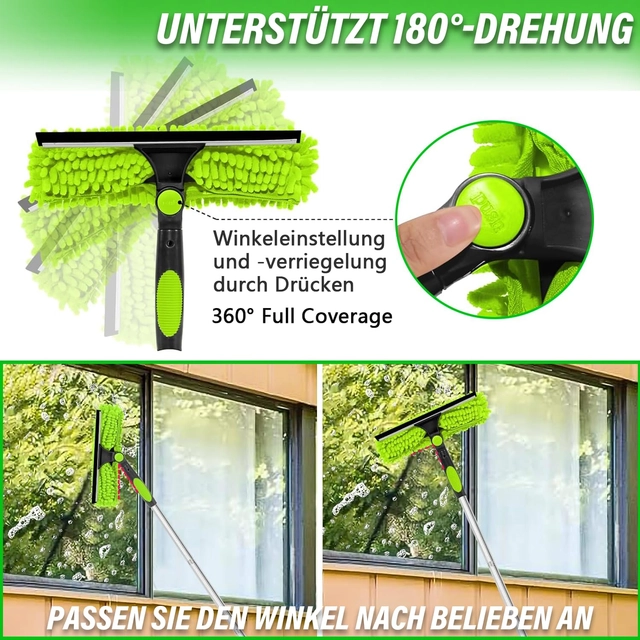• Ștergătorul de ferestre 2 în 1: plăcuța de microfibră poate fi utilizată pentru a îndepărta petele și plăcuța de chenille este foarte absorbentă, îndeplinesc cerințe diferite de curățare, iar designul Velcro îl face ușor de aplicat, securizați și îndepărtați. Peria de stoekirea moale și elastică din cauciuc pe cealaltă parte poate fi utilizată pentru a elimina apa pentru uscare rapidă și nu lasă zgârieturi și dungi. Designul 2 în 1 face curățarea ușoară și eficientă.