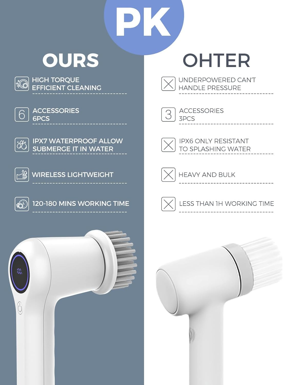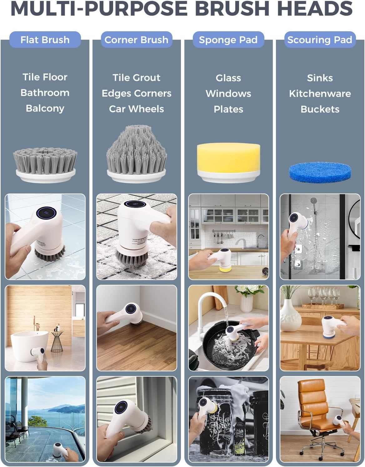 Schimbați peria în funcție de diferitele scenarii de curățare, deoarece această perie este concepută pentru o varietate de sarcini de curățare. Funcționează eficient pe diferite suprafețe, inclusiv plăci, chiuvete, chiuvete, căzi, topuri de sobă și multe altele.