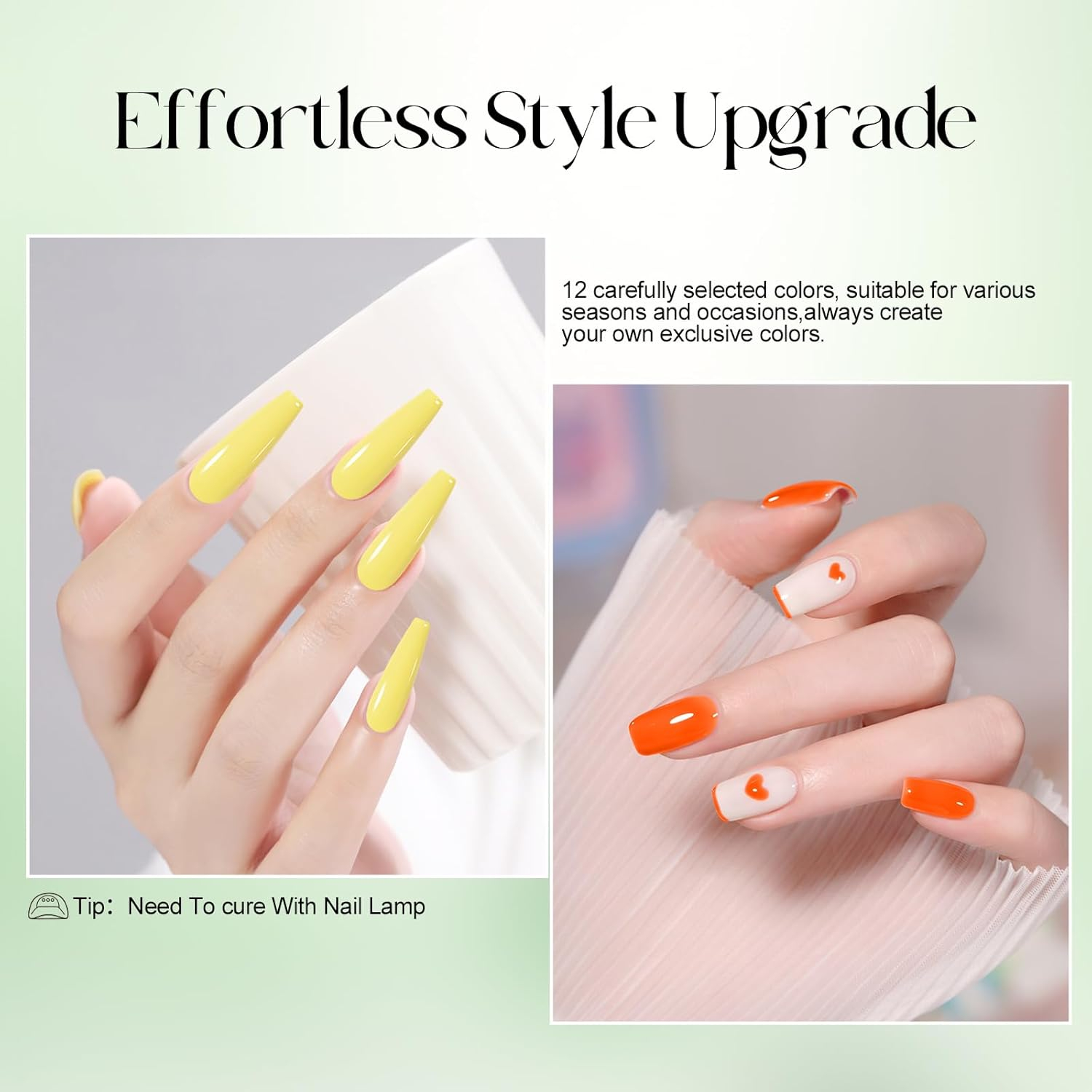 • De lungă durată și ușor de utilizat: Oja de gel durează 28+ zile cu o strălucire perfectă atunci când este utilizată corect. Necesită blană de bază și paltoane de top. Se usuca în 30-90 de secunde sub o lampă.