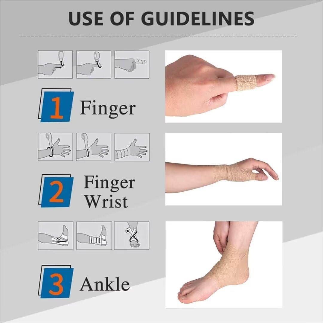 Înalt elastic și respirabil: bandajul adeziv permite o întindere maximă, care poate fi întinsă pentru a dubla lungimea nesăpânită și oferă o gamă de niveluri de sprijin pentru articulațiile rănite. Țesătura poroasă permite ventilația, astfel încât pielea de dedesubt să poată respira, facilitând vindecarea și recuperarea