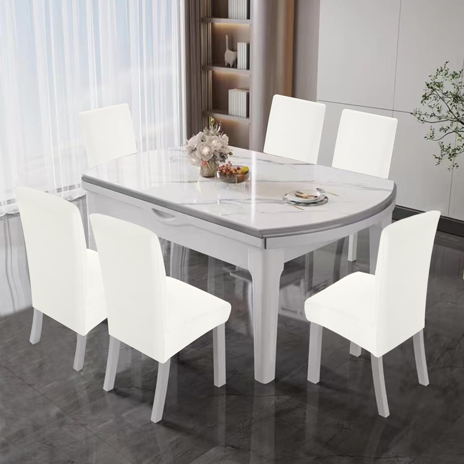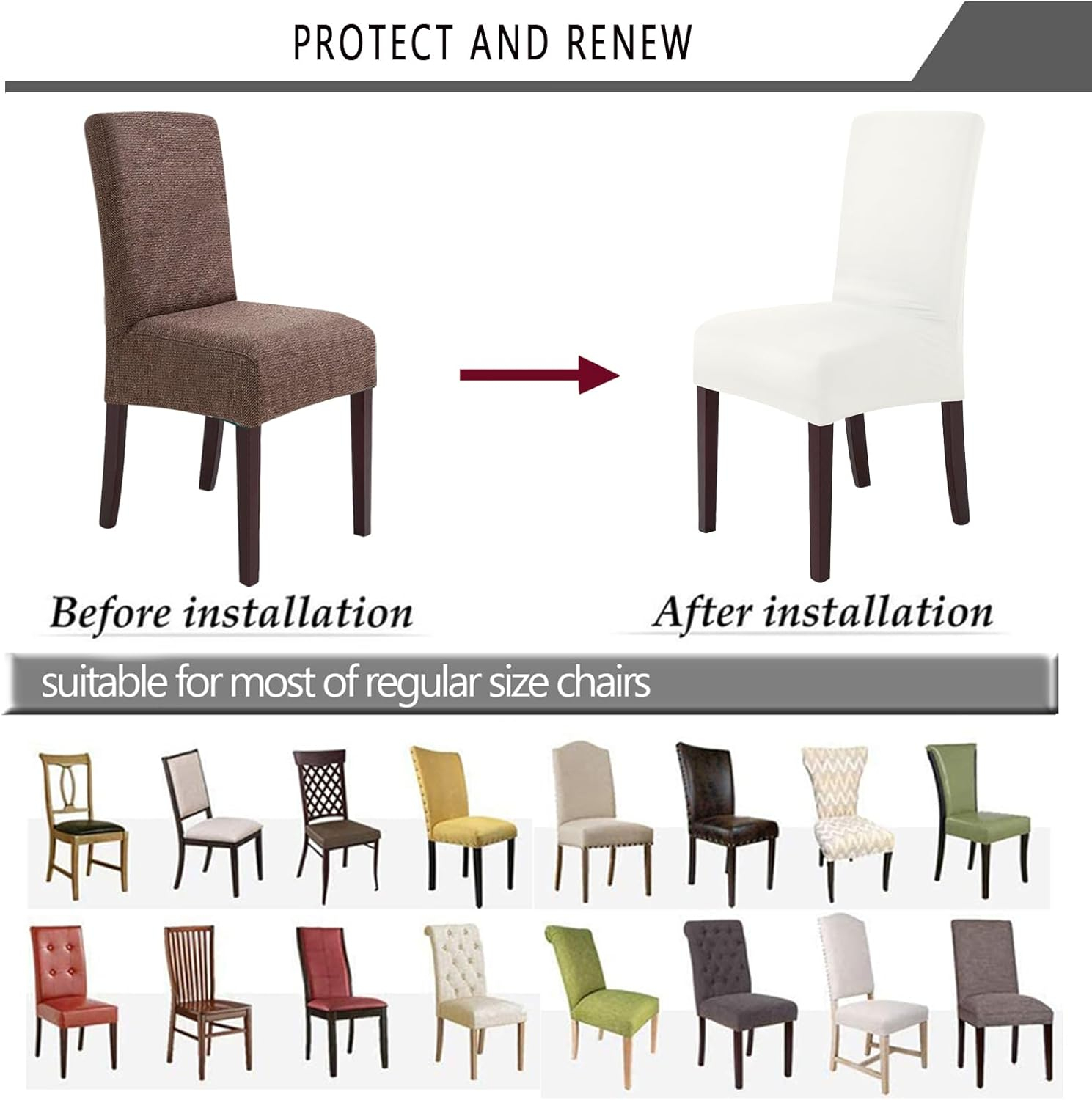 Elasticitate excelentă: slipcovers-ul scaunului este realizat din material elastic elastic, restaura rapid, sigur, cu tiv elastic cusut, țesătura întinsă unică se conformează contururilor mobilierului dvs. pentru o potrivire personalizată. Potrivit pentru cele mai multe dimensiuni de scaune.