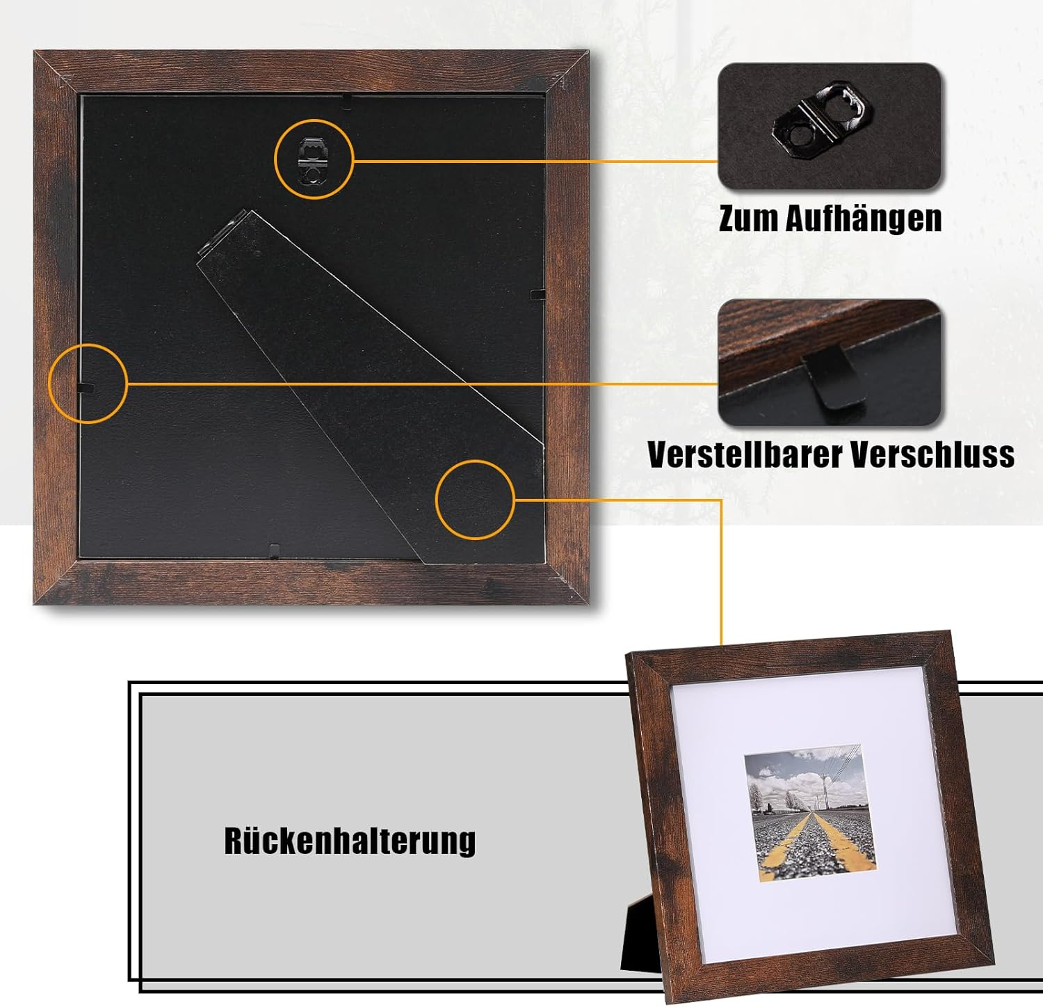 ASPICA VERSATILE Rama foto este disponibila in trei culori negru, alb, maro inchis, textura alba de epocă si marmura. Cadru fără montare, potrivit pentru imagini standard de 8x8 inch. Cu un suport, cadrul este perfect pentru imagini de 10 x 10 cm. Rama foto de 20 x 20 cm poate fi plasată pe o masă sau pur și simplu atârna pe perete cu cârligele de pe spate