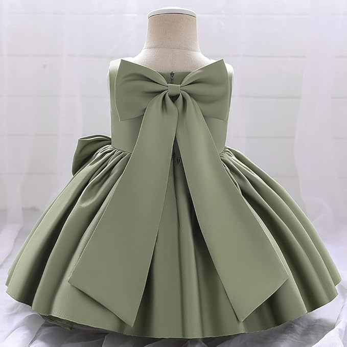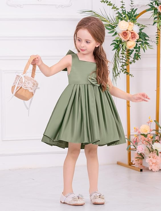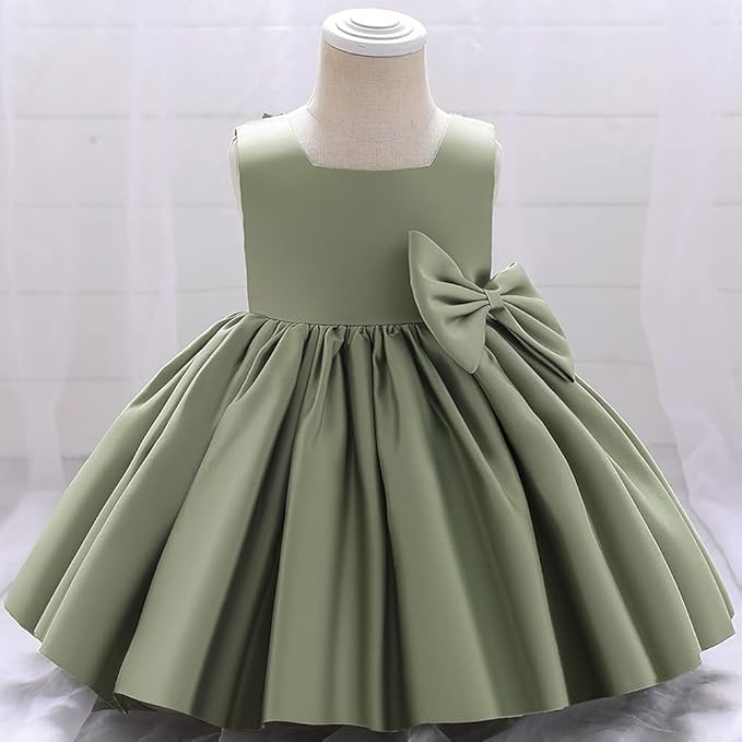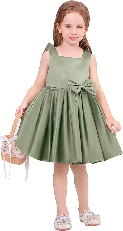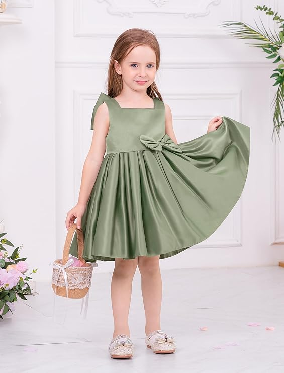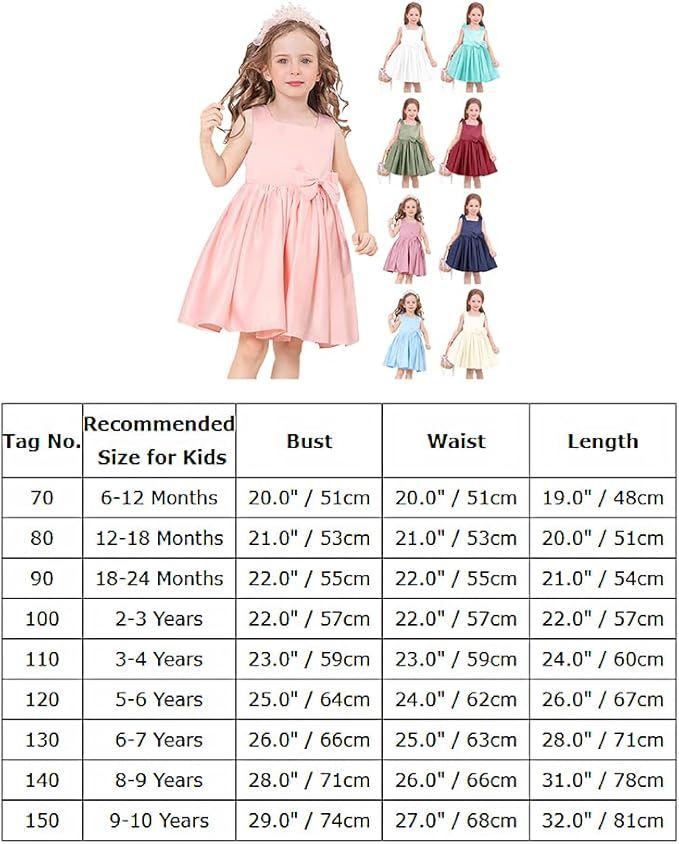 • DESIGN ELEGANT - Design elegant și elegant, rochie din satin. Gât pătrat clasic și design fără mâneci. Un arc detașabil este atașat de talie, arată atât de drăguț și fermecător. Spatele este decorat cu un arc mare detașabil, astfel încât fetița ta să devină cea mai frumoasă prințesă din mulțime. Fermoar despicat în spate