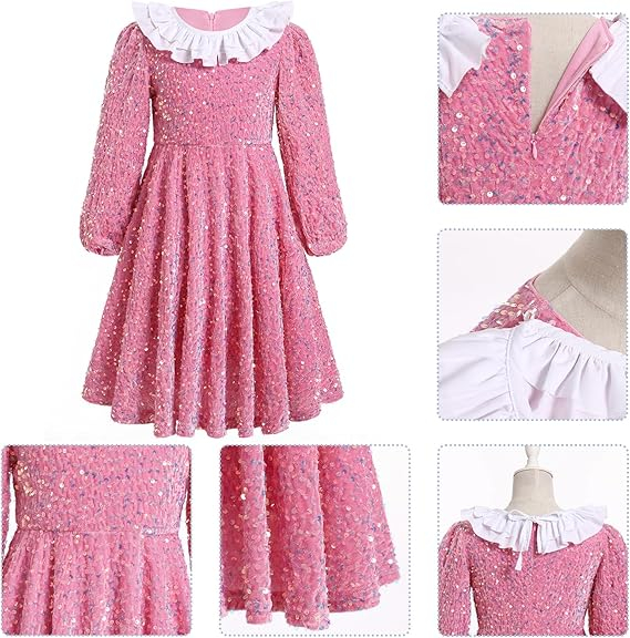 Produsul: Fete pentru fete de Crăciun de Crăciun Lungă de gemule de Gurii de Cală Bib Detașabil Velvet Sechin Role Rochie Rochia este realizată din țesătură de catifea cuminte moi cu senzație de atingere moale și elasticitate moderată, ceea ce te face să te simți cald și confortabil în zilele reci. Purtând-o, fiica ta va fi o prinţesă fermecătoare şi elegantă în mulţime.