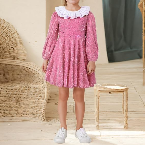 Caracteristici: mânecă lungă, paiete, volane. Rochii de vacanță de toamnă și de iarnă de vacanță lungi de puf puf de înghițit de rufe de învelitoare de catifea de vițel se îmbracă cu paiete, lăsați-vă copilul să se simtă la modă și unic în viața de zi cu zi. Fereastra de fată Girlsches Fereastra de toamnă Bluze Bluze albe de toamnă Lână de maneci lungi cu tane A-Type.