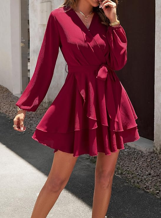 Mâneci lungi și V-neck: cu designul său elegant și mânecile lungi, rochia de șifon pentru femei oferă o alegere la modă pentru petreceri. Colacul și centura V accentuează figura, iar rochia de împachetat în culori solide păstrează aspectul simplu, dar eficient