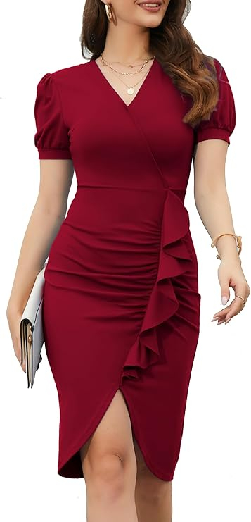 Caracteristici: Mânecă de puf, Culoare solidă, Lungime de genunchi, volan cu fantă, Ziper invizibil în spate