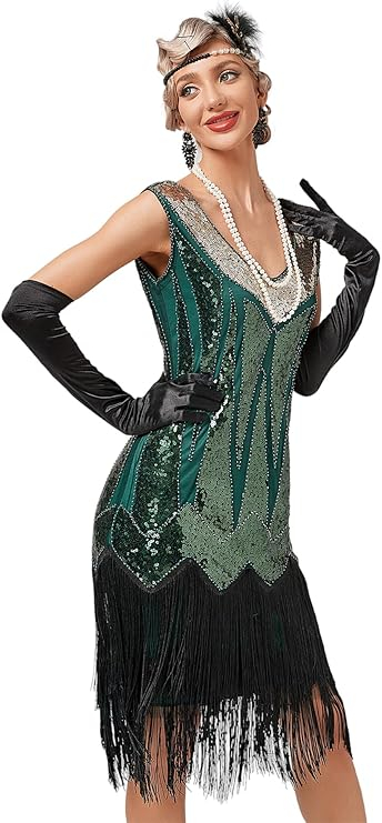 • Rochia scurtă de vară pentru femei, fără mâneci, fără spate, deasupra genunchiului, franjuri din paiete, design vintage, elegant, festiv și la modă.