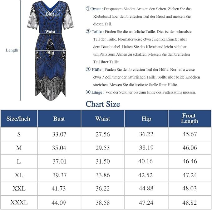 • Dimensiune XXL: Piept: 106 cm. Circumferința taliei: 88 cm. Dimensiuni ale șoldului: 106 cm. Lungime: 117 cm (inclusiv franjuri).