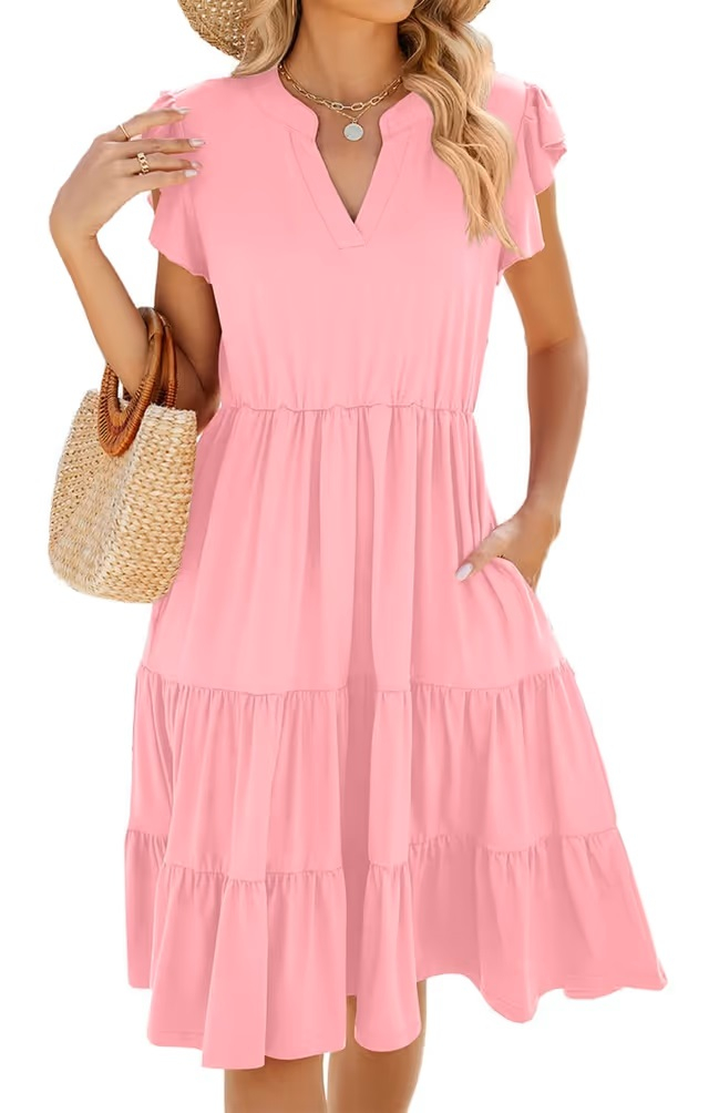 Material: Joligiao summer dress is made of 65% rayon, 30% polyester, 5% spandex, super soft fabric, comfortable and skin-friendly. This V neck ruffle shirt dress for women provides a pleasant dressing experience for you.