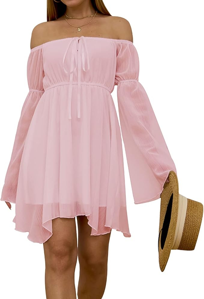 Femei elegante de corset: rochie reglabilă din dantelă, suflat sexy, fără umeri, mâneci lungi, tiv neregulat, peste lungimea genunchiului, cu căptușeală, fără teamă de transparență, leagăn și rochie elegantă cu mânecă de clopot pentru femei pentru a-ți exprima dulceața și eleganța