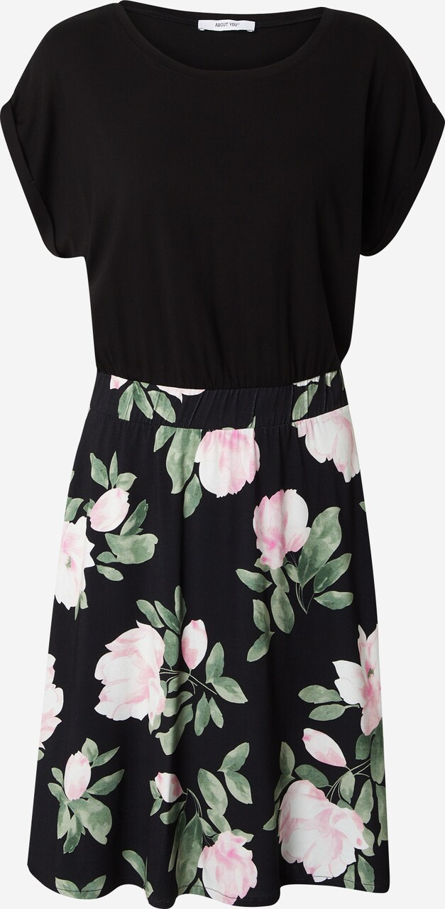 Rochie casual pentru femei, mâneci scurte, neagra cu flori M
