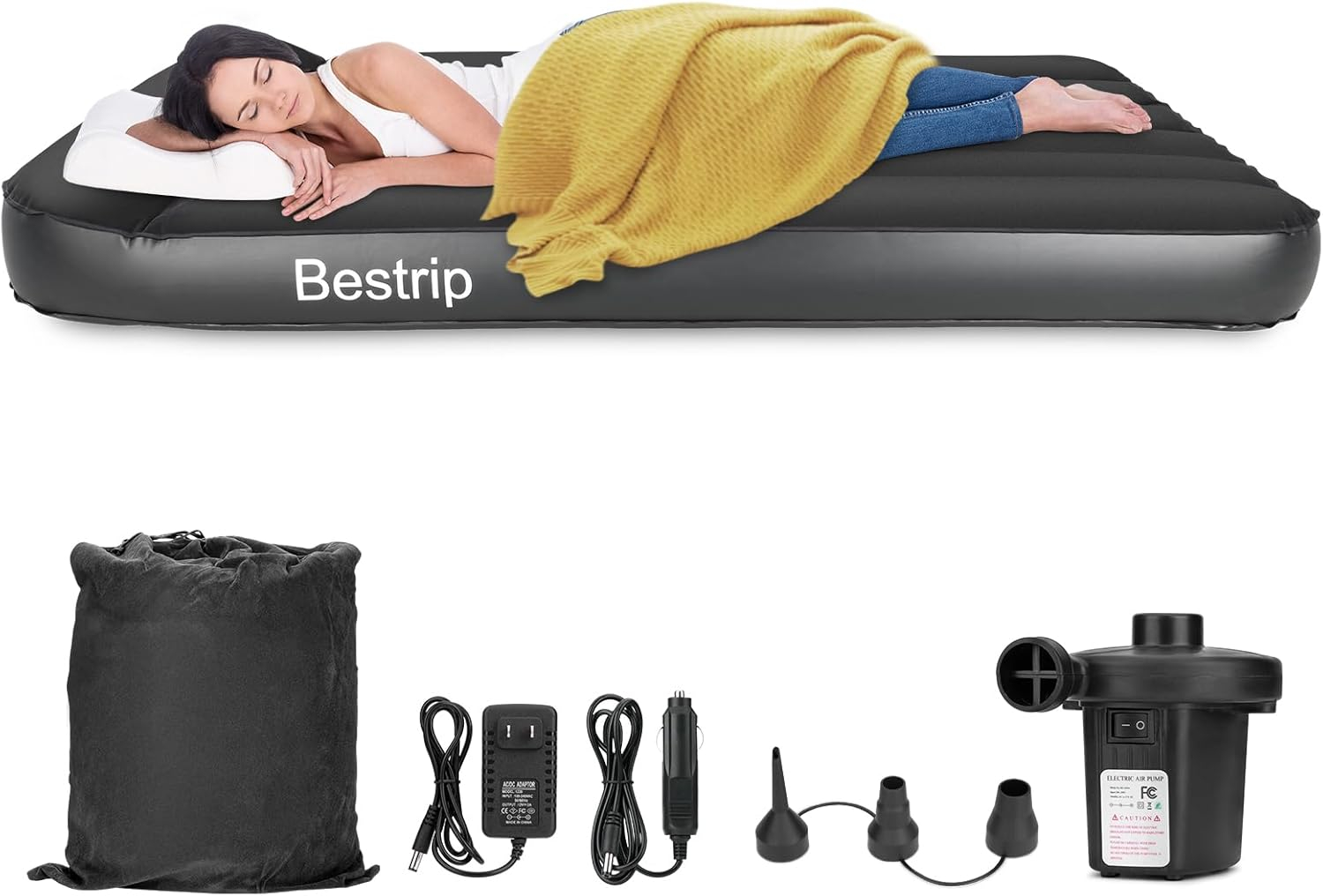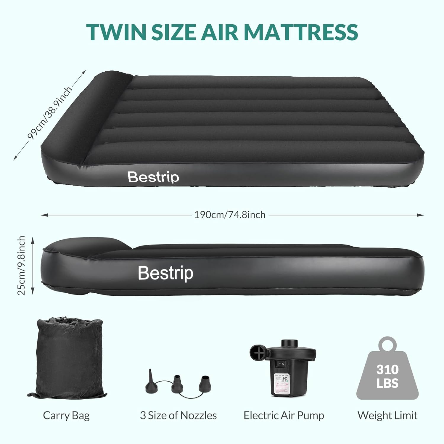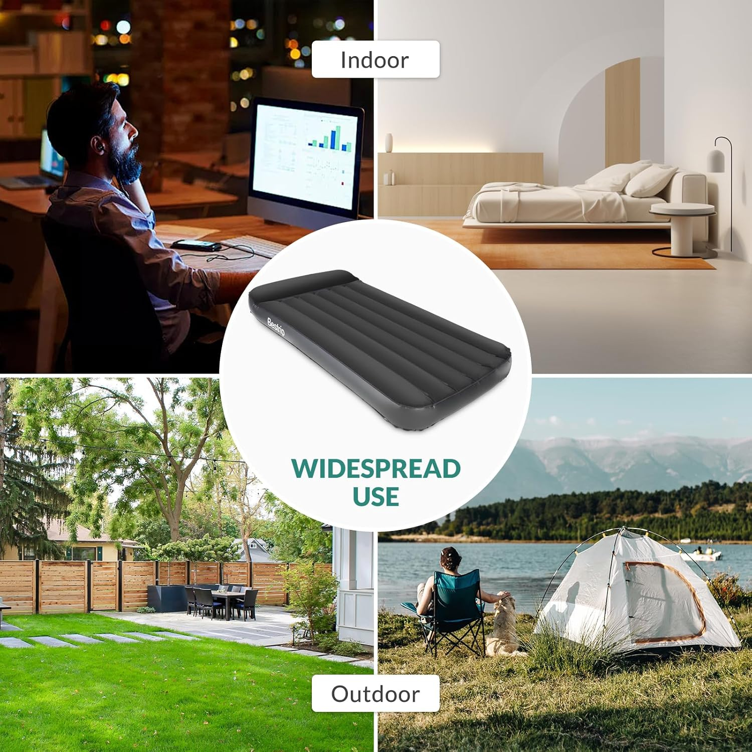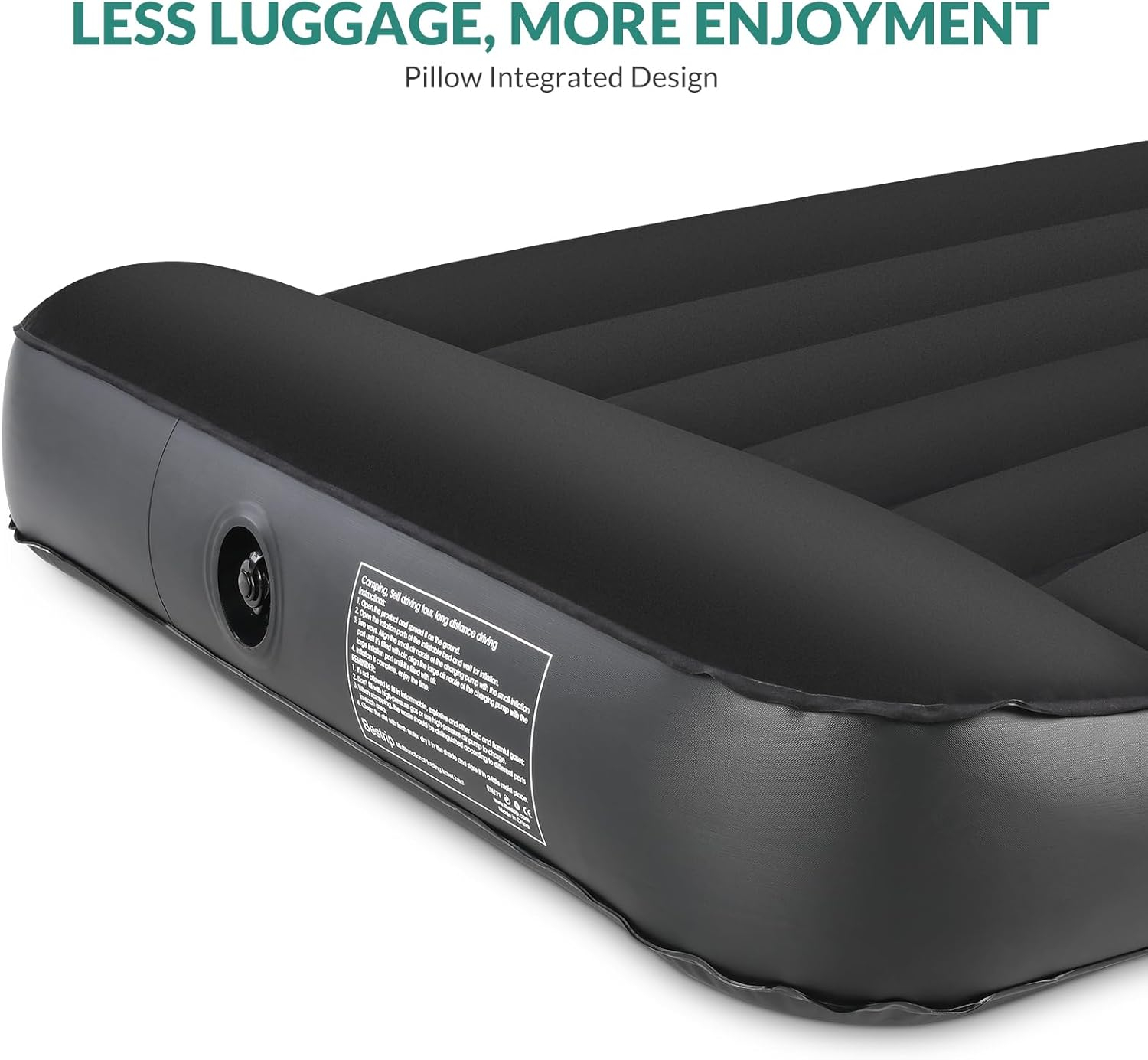 Saltea gonflabilă cu aer pentru pat cu aer, pat cu aer cu pompă electrică de aer, pat gonflabil pentru oaspeți pat de o persoană Saltea cu aer pentru dormit cu pernă pentru 1 persoană, potrivită pentru interior și exterior negru