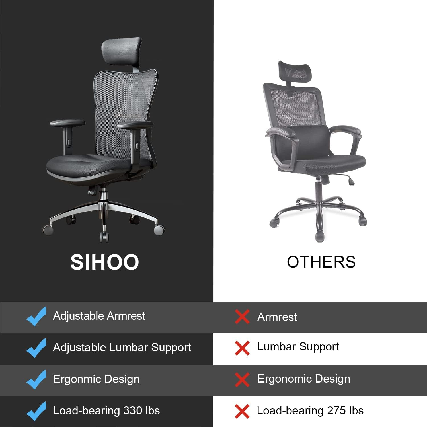 Scaun de birou ergonomic - scaunul ergonomic oferă 4 puncte de sprijin (cap-sfârșit / spate / șold / mâini) și sprijin de lombar propriu adecvat. SIHOO proiectează scaune ergonomice pentru a satisface nevoile diferite, cu înălțimea scaunului, reglarea capului, suport lombar și ajustarea suportului pentru spate, potrivite pentru șederea îndelungată și reduceți durerea. Potrivit pentru persoanele 5'6" până la 6'2" înălțime.