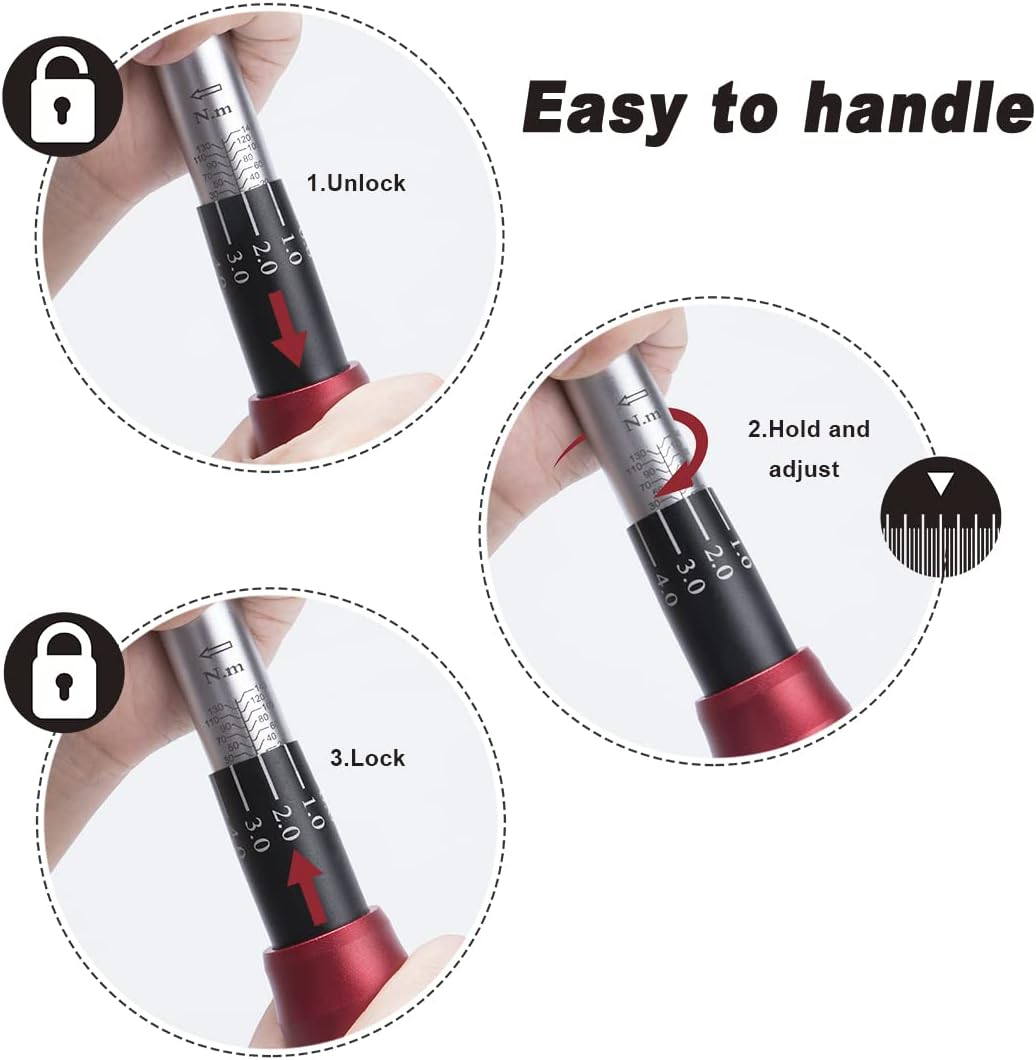 Deplasându-se de încredere și SIGURANȚĂ: Când se ajunge la valoarea cuplului stabilit, cheii vor emite un semnal de alarmă pentru a vă reaminti să nu mai aplicați forța pentru a preveni daunele excesive ale obiectelor dvs. Capul chel este echipat cu buton de eliberare rapidă, care poate instala și scoate cu ușurință manșonul, apucă ferm manșonul pentru a preveni căderea.