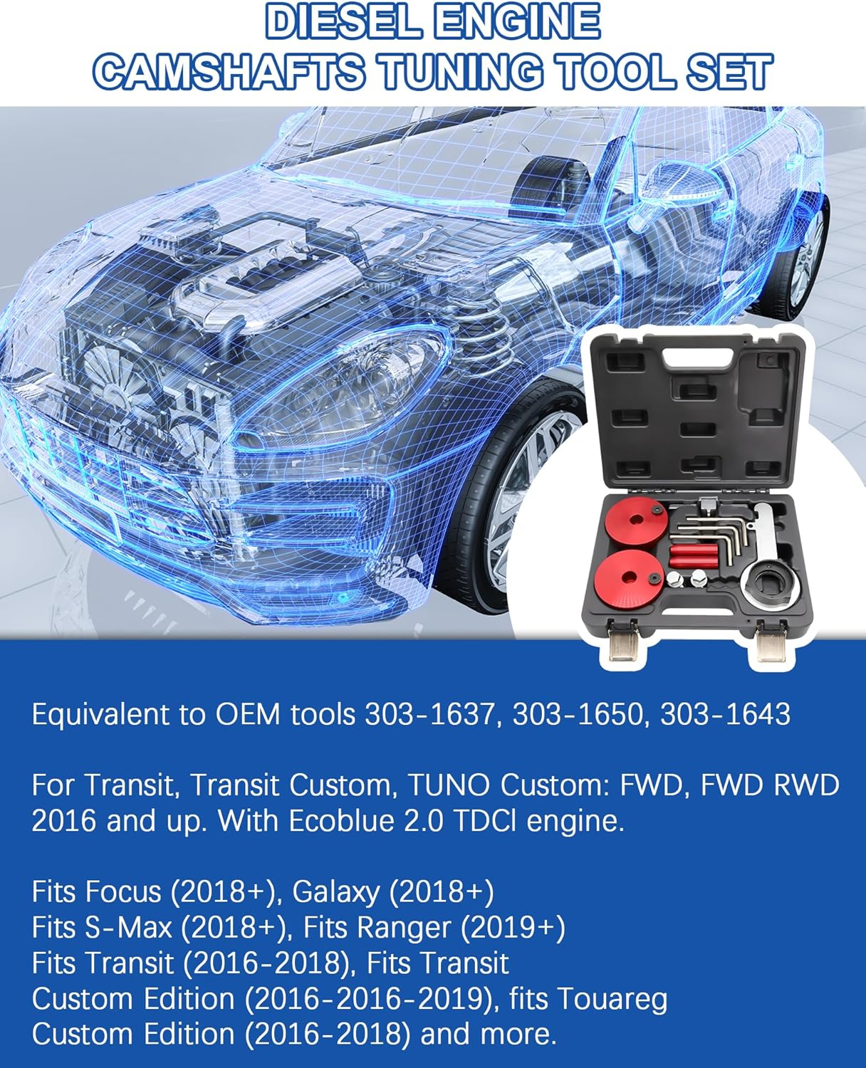 Compatibilitate: Setul nostru de instrumente cu motor este perfect compatibil cu Ford Transit, Transit Custom și Touareg Custom pentru 2016 și versiunile mai noi AWD, FWD și RWD și este ideal pentru cele cu motorul 2.0 Ecoblue TDCi.