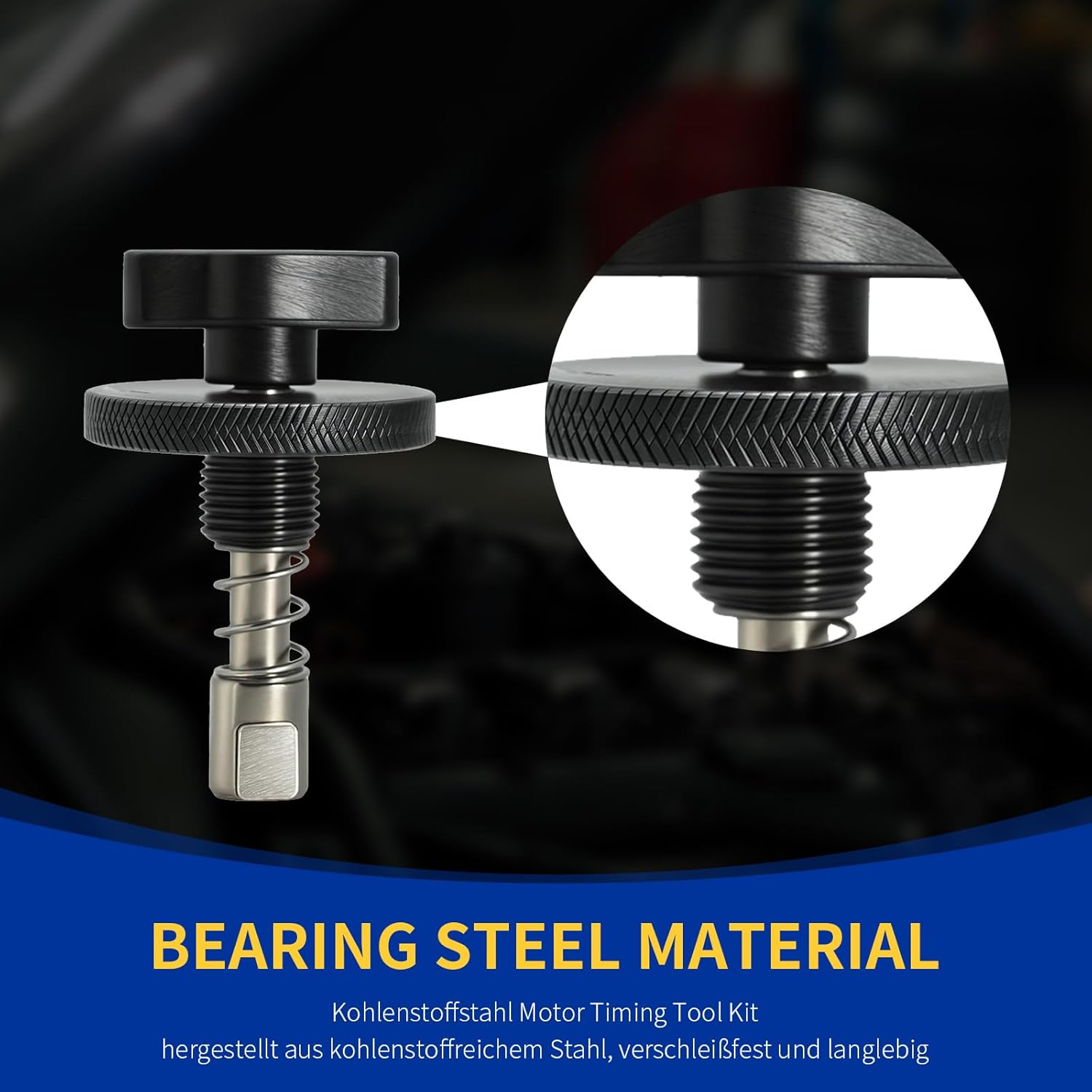 Kitul de utilizare este utilizat pentru a repara arborele cu came și arborele cotit pentru a asigura poziția exactă la demontarea / instalarea lanțului de sincronizare pentru a evita nealinierea și deteriorarea motorului; Acesta include acul de blocare mai tensionat pentru a simplifica procesul de tensionare a lanțului și pentru a îmbunătăți eficiența întreținerii.