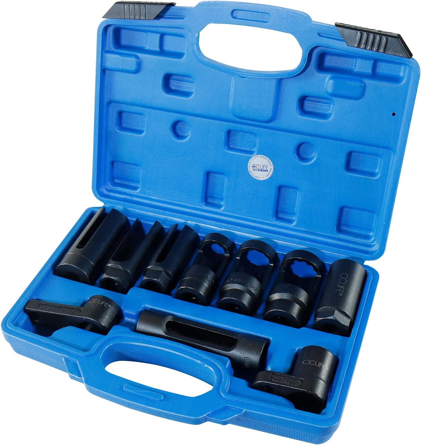 Pentru instalarea și îndepărtarea senzorului de lambda, comutatorul termic al ventilatorului radiatorului, asamblarea injectoarelor diesel etc. Toate prizele din oțel cromat de vanadiu, negru ars. Compatibil cu BMW, Ford, Mercedes, Opel, Vauxhall (Corsa B, Astra F+G, Vectra A + B), Rover, Seat, Volvo și multe altele. 1/2 inch (traducere cu tracțiune: 27 mm (1-1/16 inch) x 78 mm (12-dârge); 7/8 inch (22 mm) x 90 mm, slot 8 x 63 mm; 7/8 inch (22 mm) x 110 mm (12-odie), slot 17 x 65 mm; 27 mm x 78 mm (12-idge); slot 2 mm (12-odige). 4mm = 2 8 mm x 78 mm (12-aură), slotat 30 x 35 mm 3/8/8-inch drive: 7/8" (22mm) x 90mm, slot 20 x 74mm; 29 x 90mm, slot 7 x 67mm; 1-1/16" (27mm) x 74mm; 7/8" (22mm) x 30mm, cu unghiul 46mm; 7/8" (22mm) x 50mm, cu o bucată de unghi de 24 mm