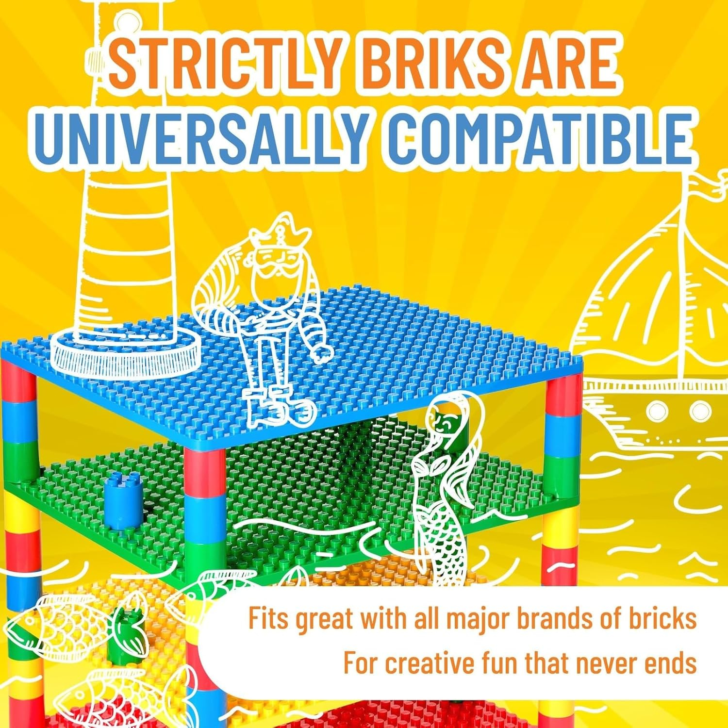 Produsele noastre de dimensiuni clasice sunt 100% compatibile cu toate mărcile importante de cărămizi de construcție. Lăsați creativitatea copilului să crească pe măsură ce se construiește și își creează propriile modele unice fără a cheltui o avere. Produsele noastre versatile pot fi folosite pentru a construi un oraș, un set de perete, o bază de masă de activitate sau orice imaginația lor poate visa în sus. Nu vă mulțumiți cu cărămizi de carton slabe, investiți în Strictly Briks pentru blocuri de construcție de înaltă calitate, durabile, care vor dura ani de zile de acum încolo.
