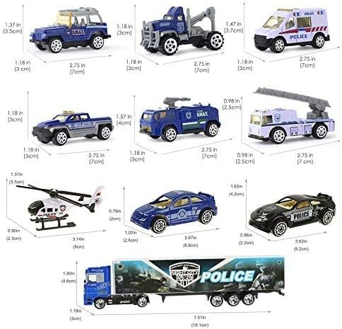 • 10 mini autoturisme cu 1 camion de transport mare intr-o cutie cadou. Inclusiv elicopterul de salvare, camionul, mașina blindată, mașina de poliție și așa mai departe.