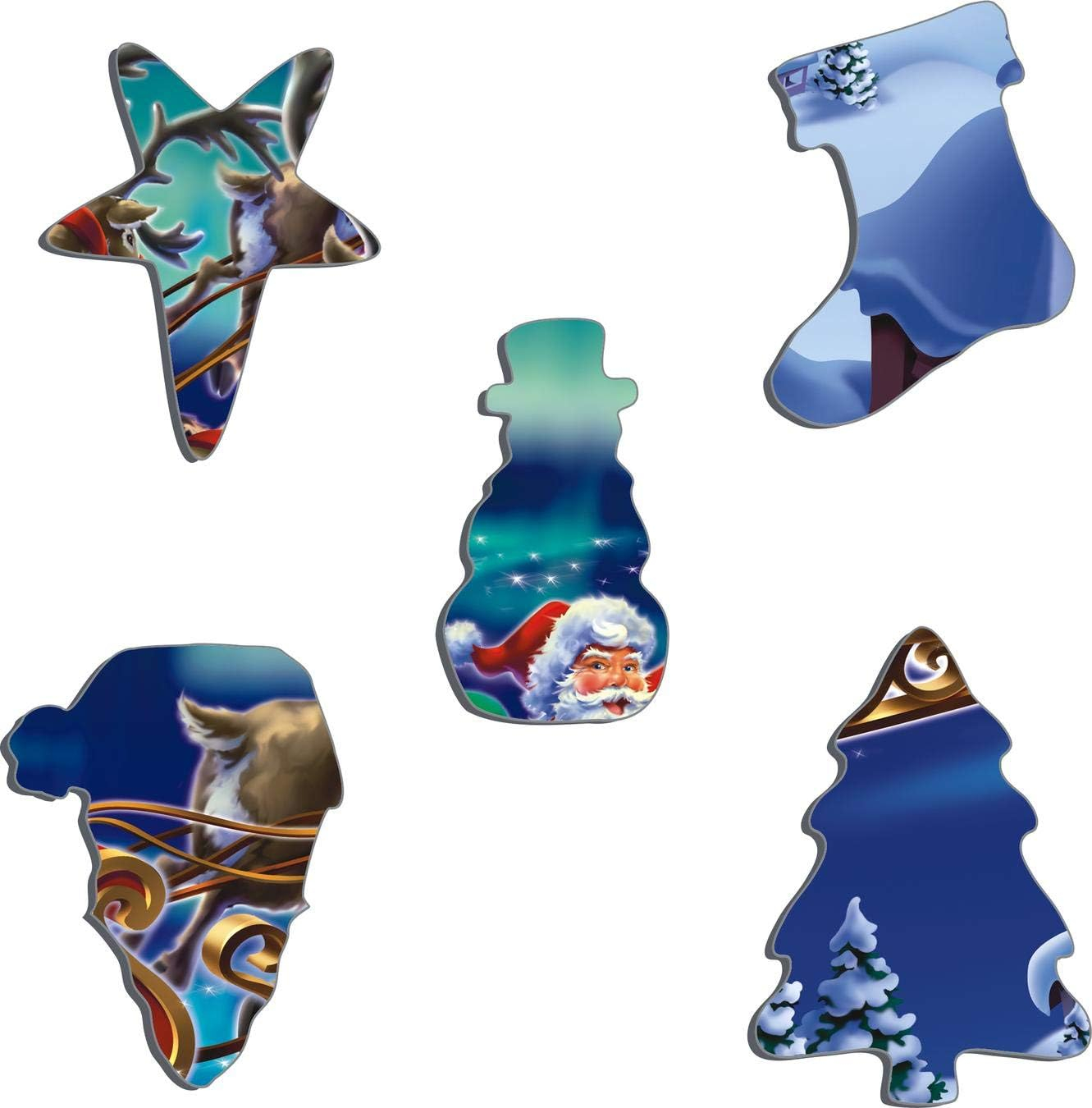 PIESE ÎN FORMĂ DE FIGURĂ PENTRU DISTRAȚIE SUPLIMENTARĂ: Include piese în formă de Moș Crăciun, sac, sacul său, o pereche de zăpadă, pom de Crăciun, sanie și stea, perfecte pentru mâini mici și descoperire suplimentară festivă.