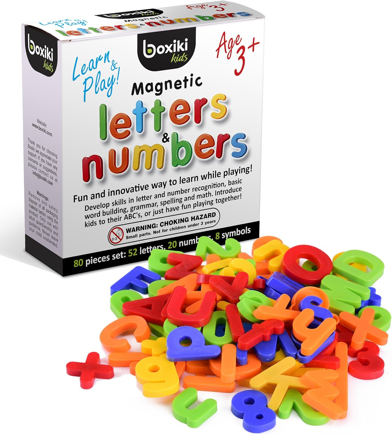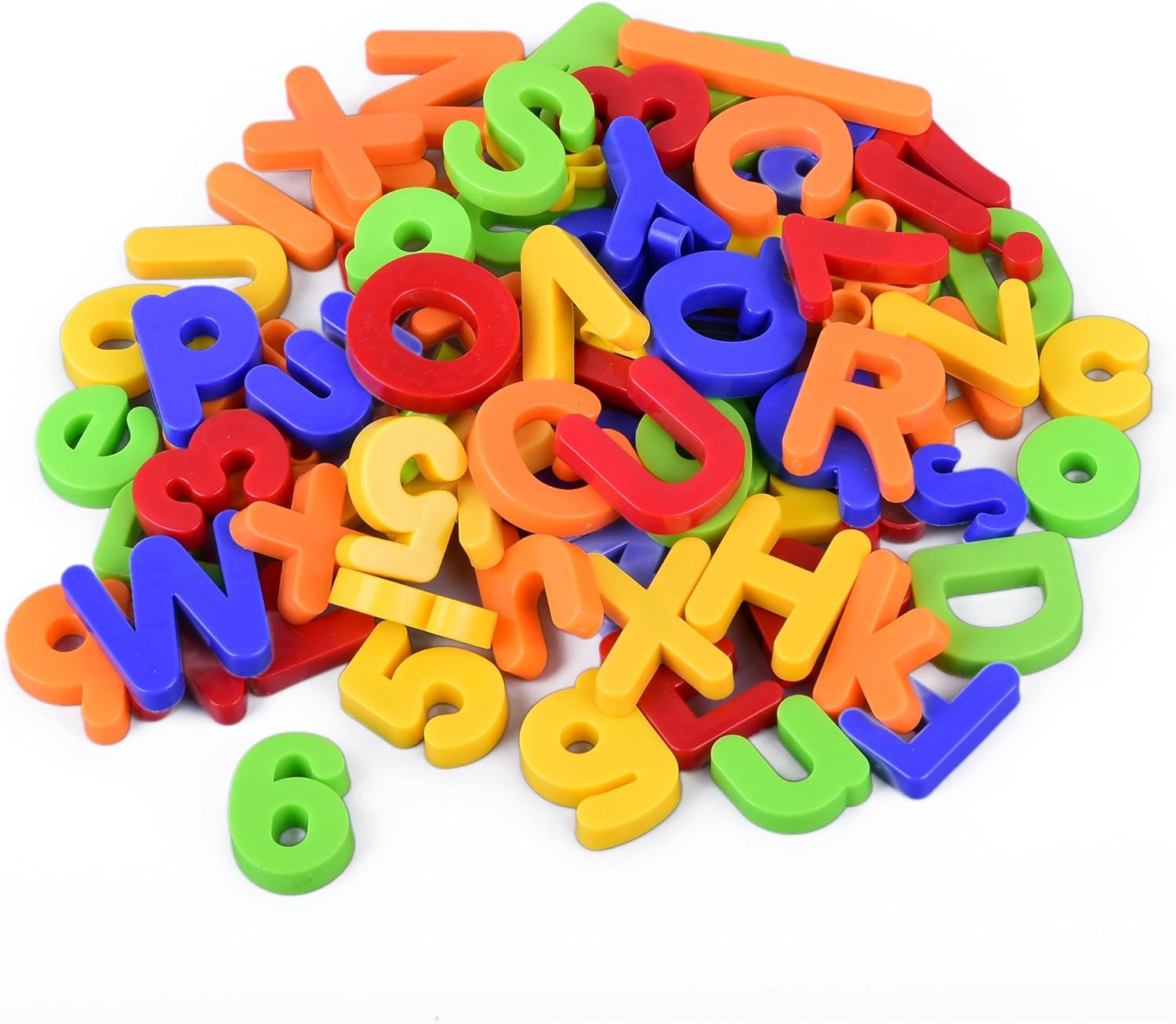 DEZVOLTAȚI SCRISOAREA ȘI RECUNOAȘTEREA NUMĂRULUI – mințile mici sunt dornice să crească și să învețe! Cu 52 de magneți alfabetici, 20 de numere și 8 simboluri – puteți folosi acest set de litere magnetice pentru a vă ajuta copilul să construiască culoarea, recunoașterea numerelor și să învețe ABC-urile