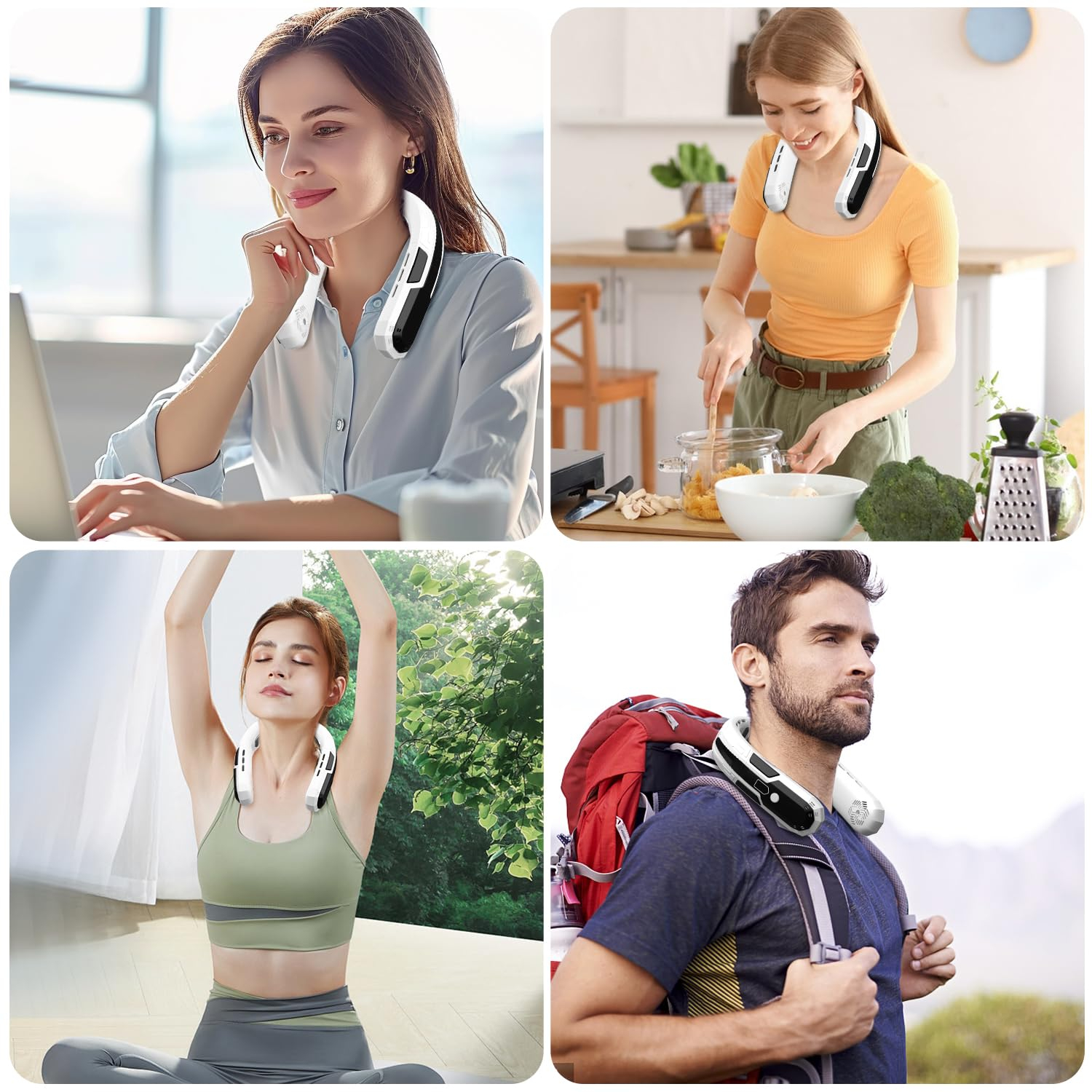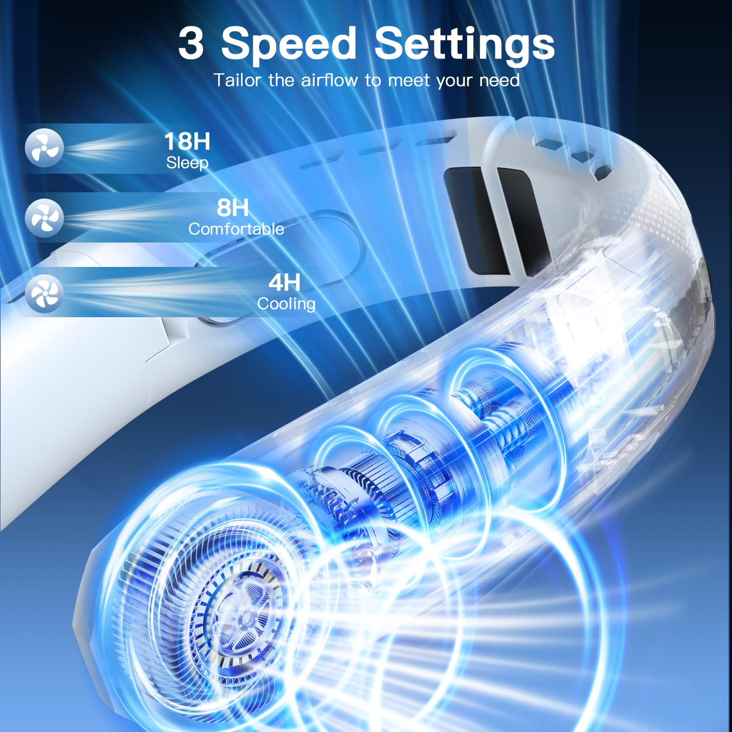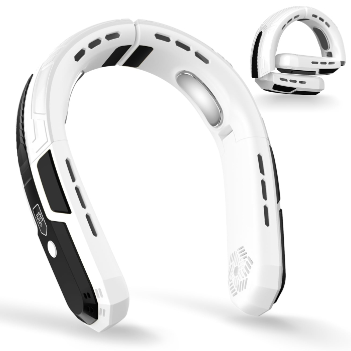 Siguranță și un flux de aer puternic de 360 °: 4 ventilator turbo portabil pentru gât pliabil, sigur pentru persoanele cu păr lung, copii și vârstnici. Designul fluxului de aer 360° asigură aer rece din toate părțile.3 moduri de viteză și afișaj LED: cu afișaj LED pentru comutarea ușoară între setările de viteză 3 și afișarea puterii bateriei rămase. Fără o cădere bruscă a puterii.Durată lungă de viață a bateriei: baterie încorporată de 6000 mAh timp de până la 4-18 ore (în funcție de viteză). Taxe complete în doar 3 ore. Cablu de încărcare de tip C inclus.Ventilator liniștit și portabil: 4 motoare fără perii pentru răcire silențioasă, silențios ventilator doar 25 dB. Doar 317 g, ventilator mic, pliabil și ergonomic. Materialul prietenos cu pielea și unghiul reglabil pentru confort. 80°-150° reglabil pentru o uzură confortabilă. Perfect pentru muncă, sport și călătorie.Cadou practic de vară: ideal pentru muncă în aer liber, birou, mers pe jos, condus, călătorii, camping etc. De asemenea, cadou perfect de vară pentru familie, prieteni și colegi