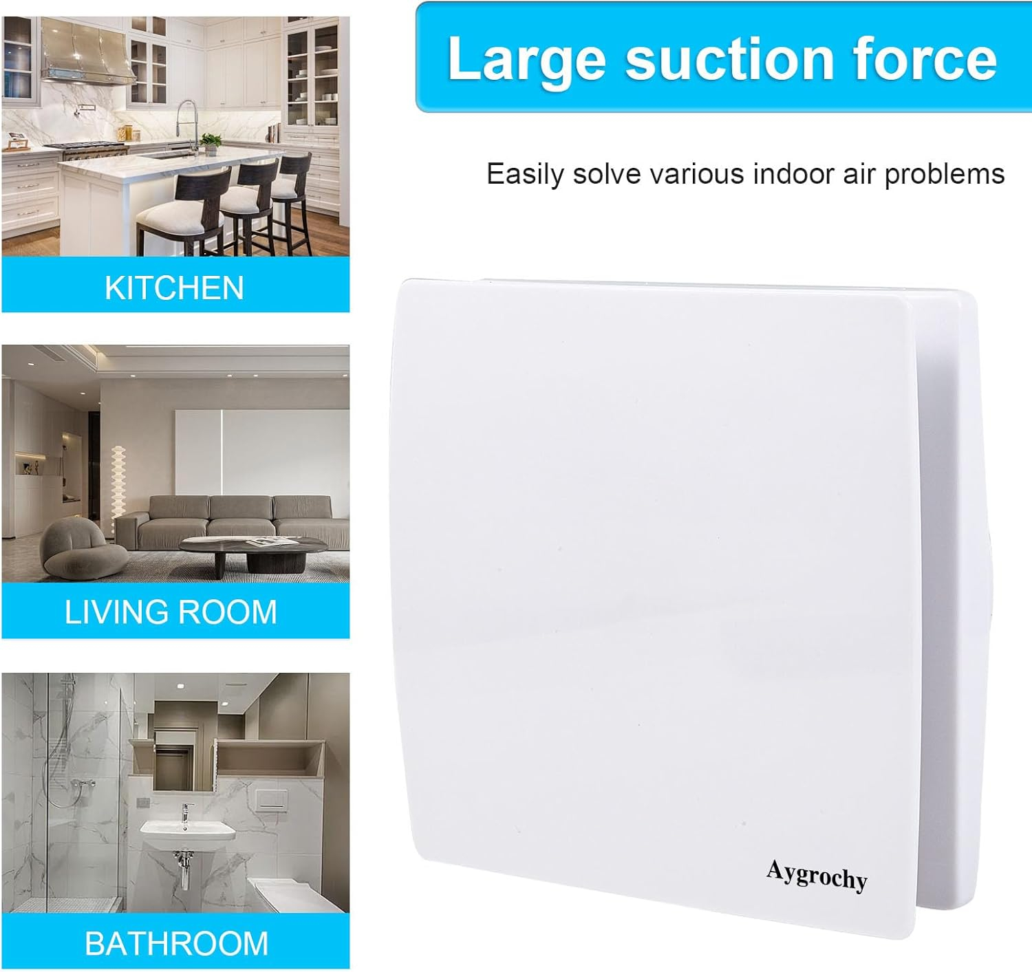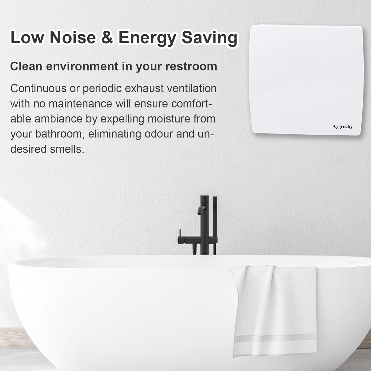 • Usedină sub control de joasă altitudineA Ventilaţia este rapidă şi stabilă, iar nivelul de presiune sonoră este de 34 dB. Ventilatorul de baie asigură o ventilație eficientă și previne zgomotele enervante. Este foarte potrivit pentru utilizare în baie, living, dormitor, bucătărie, birou.