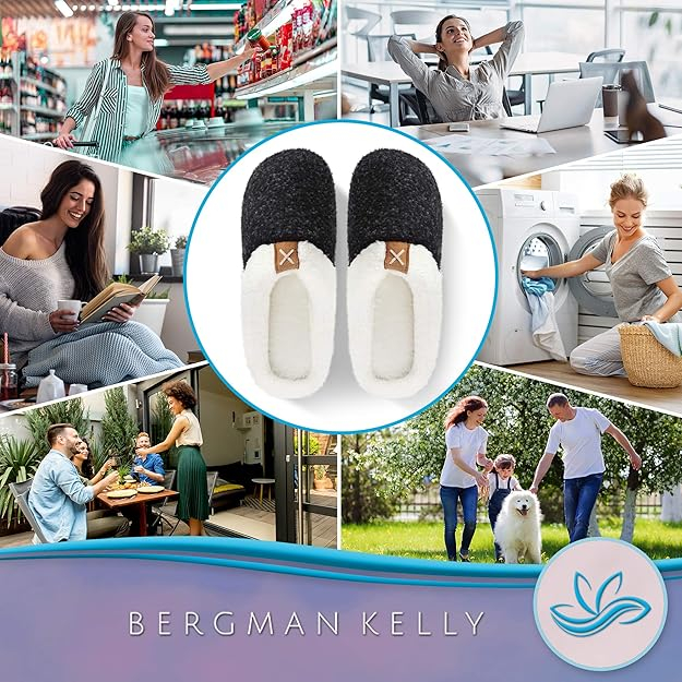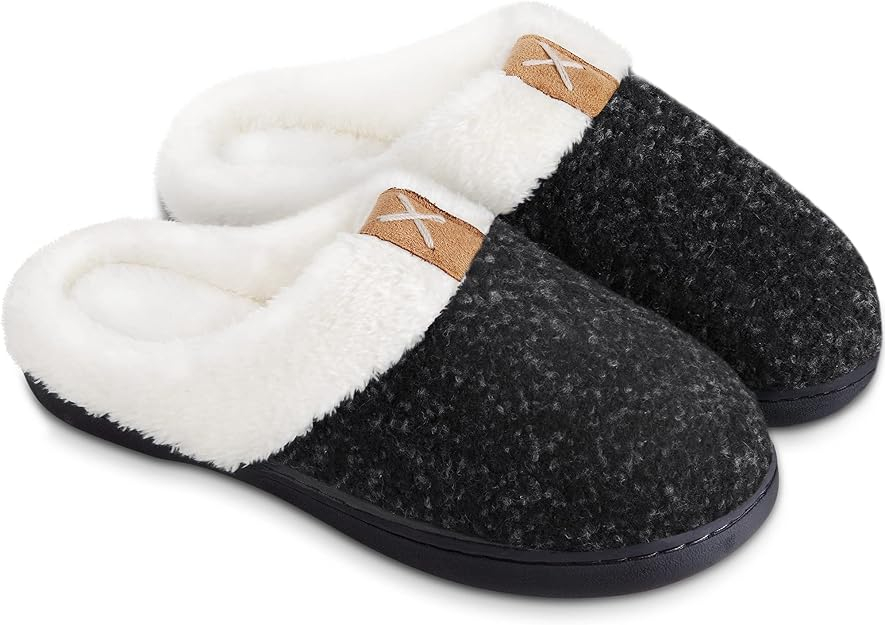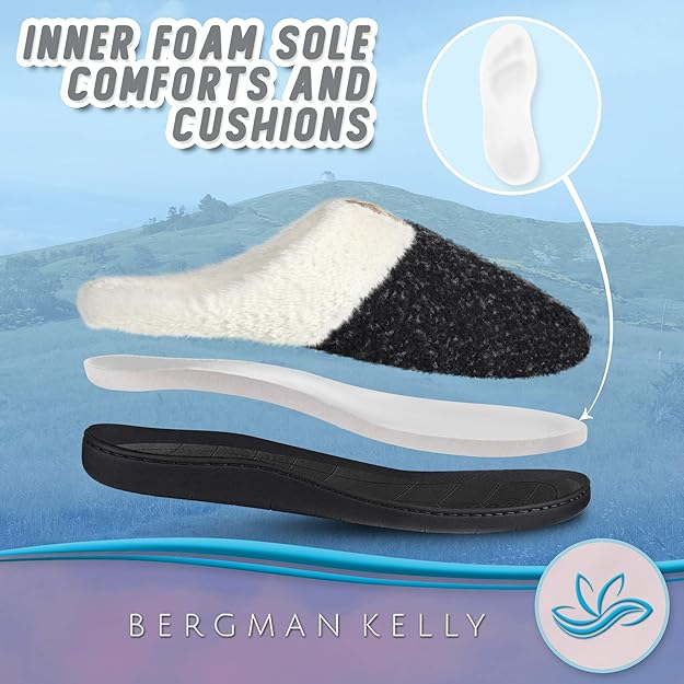 WARM & WONDERFUL - Degetul de deget de la picior, închis, papucii de casă este căptușit cu lână pufoasă pentru căldură relaxantă; stilul simplu de diapozitiv îl face un pantof
