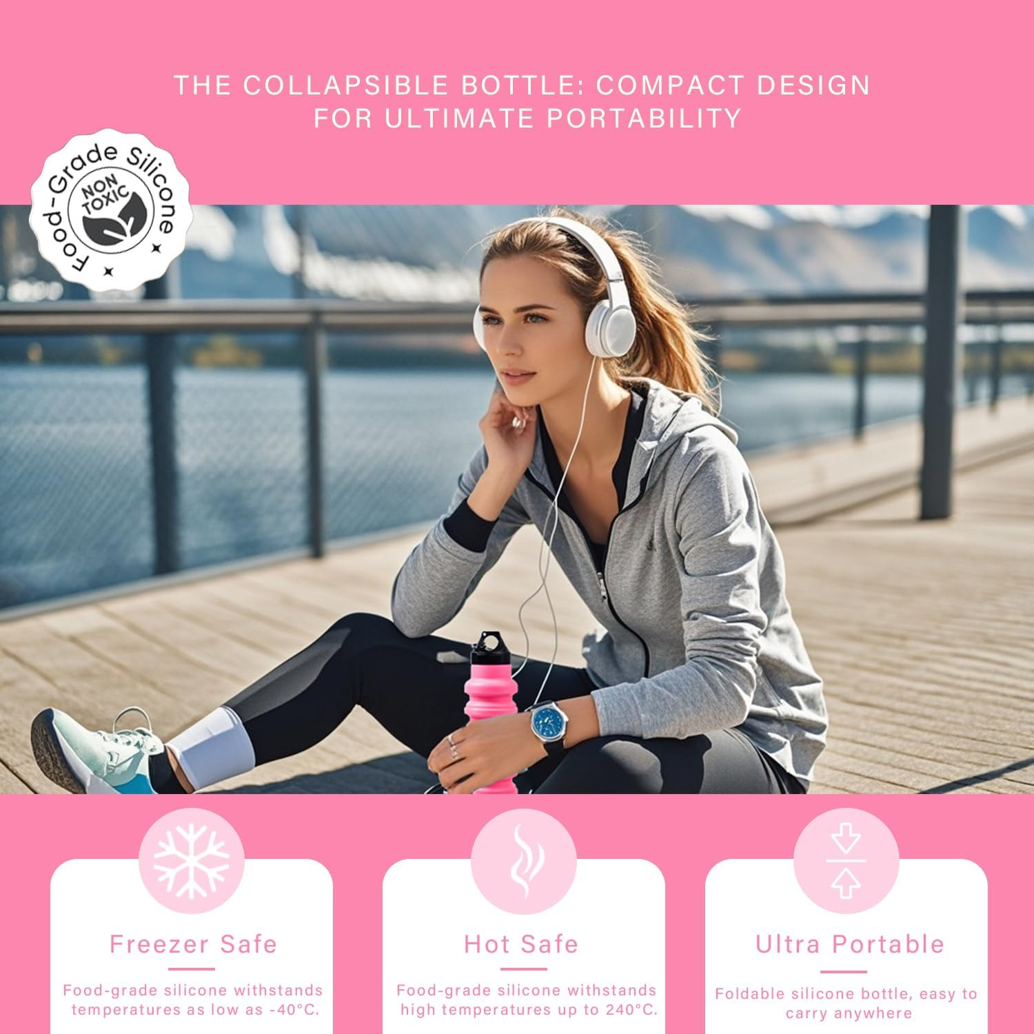 Aceasta este o sticlă de apă pliabilă, de mărimea sticlei de apă atunci când este pliată este de 7 x 24 cm, iar capacitatea este de 550 ml. După pliere, înălțimea este de 14,5 cm, iar capacitatea este de 200 ml. Puteți plia sticla de pliere transformatoare în sau în afară, în funcție de cantitatea de băutură necesară. Acest lucru economisește spațiu valoros.