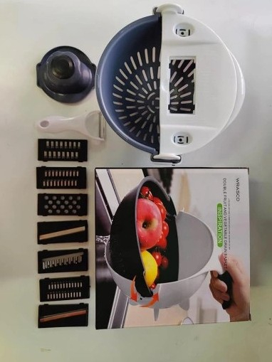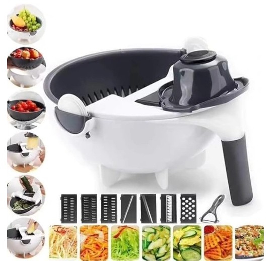 Magic Slicer pentru legume cu Inlet Basket 9w1 - acest gadget de bucătărie minunat are diverse capete de cuțit interschimbabile care vă vor satisface toate nevoile de tăiere, tăind felii sau chiar făcând piure din legume sau cartofi de zdrobire.