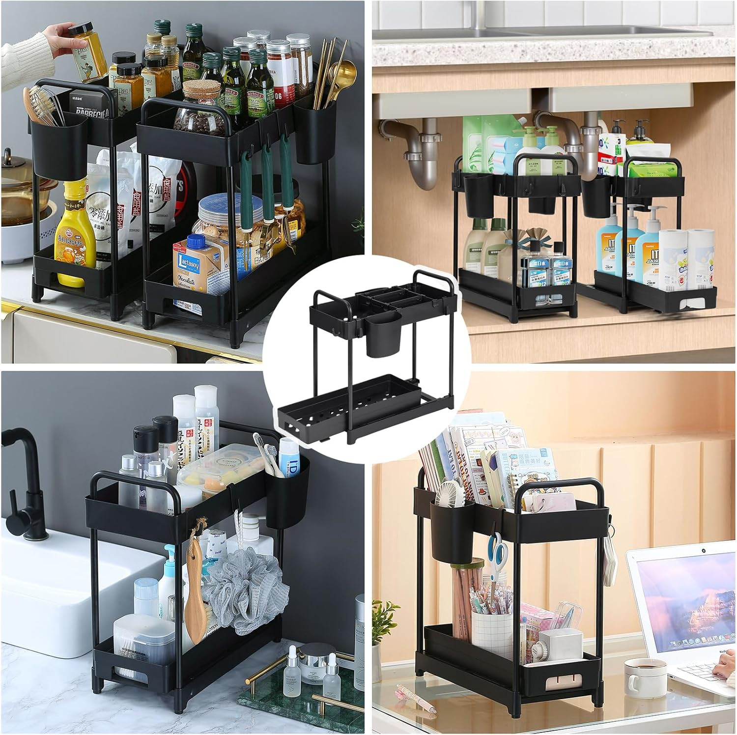 Stabil și durabil: organizatorul bucătăriei este fabricat din plastic gros și tuburi din oțel inoxidabil care îmbunătățesc durabilitatea și capacitatea de încărcare a raftului. Partea de jos este echipată cu 4 plăcuțe anti-alunecare, care întăresc și mai mult structura raftului. Tubul negru din oțel acoperit poate preveni rugina și nu se rupe nici măcar în timpul depozitării prelungite într-un loc umed.