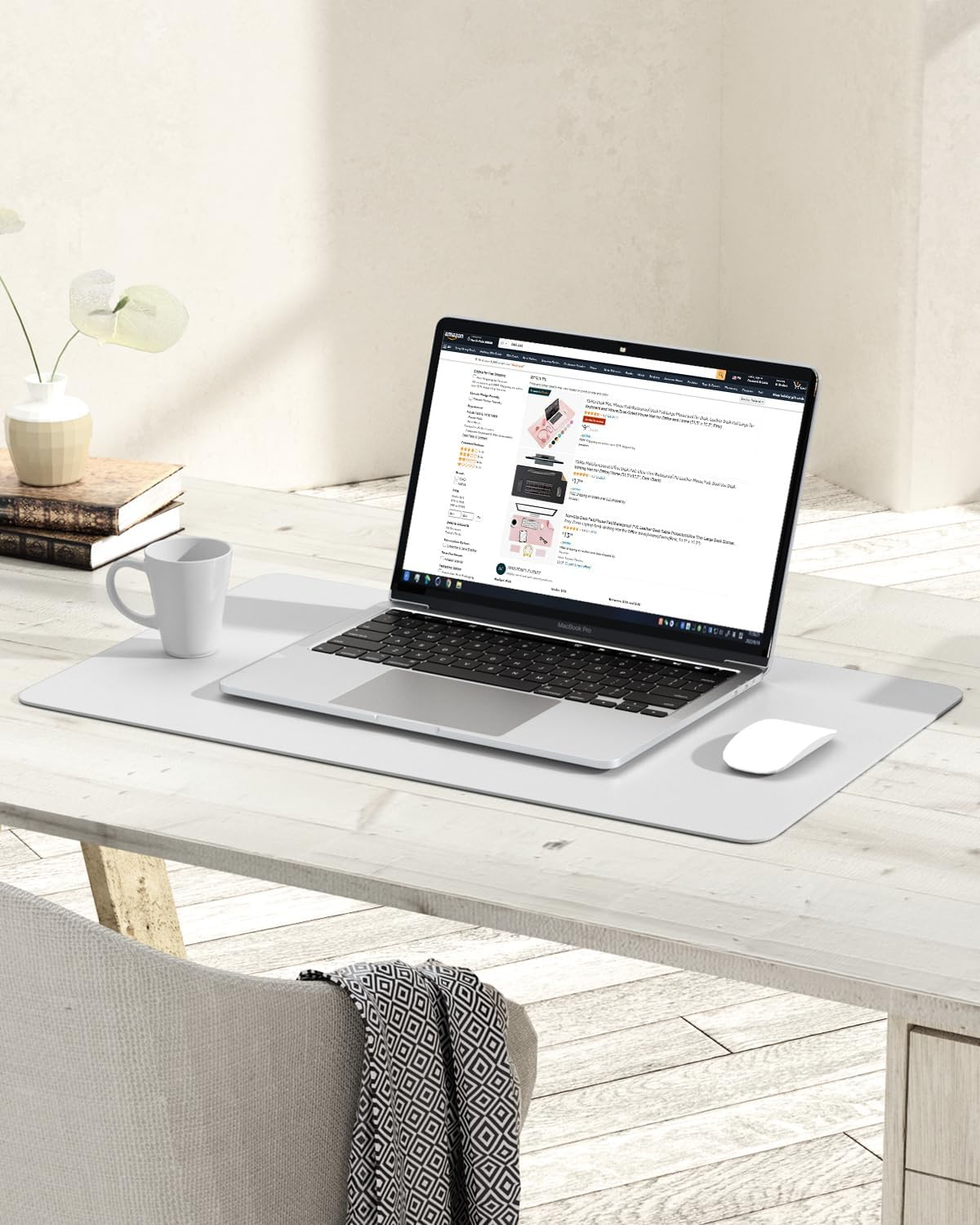 Utilizare largă: Dimensiunea covorașului de birou este suficientă pentru a ține laptopul, mouse-ul și tastatura. Pad-ul de birou poate fi folosit ca un covoraș de mouse de birou și se simte confortabil și moale, astfel încât brațele dvs. să nu se simtă reci în timpul iernii. Rezistent la apă și ulei, vă protejează sticla / tableta de lemn de zgârieturi, pete și stropi.