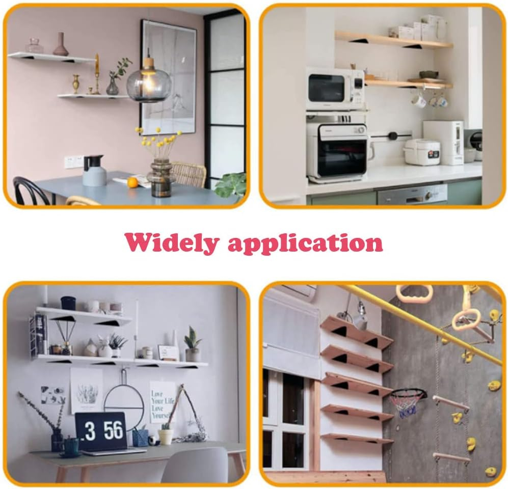 Aplicație largă: suportul triunghiular al peretelui este potrivit pentru toate tipurile de plăci, poate fi folosit ca raft de cărți, raft de bucătărie, suport de plante, poate fi folosit și în bucătărie, baie, dormitor, birou etc., adăugând un sentiment de artă la diverse stiluri de decorare, aceste rafturi plutitoare sunt perfecte pentru rafturile DIY deschise.