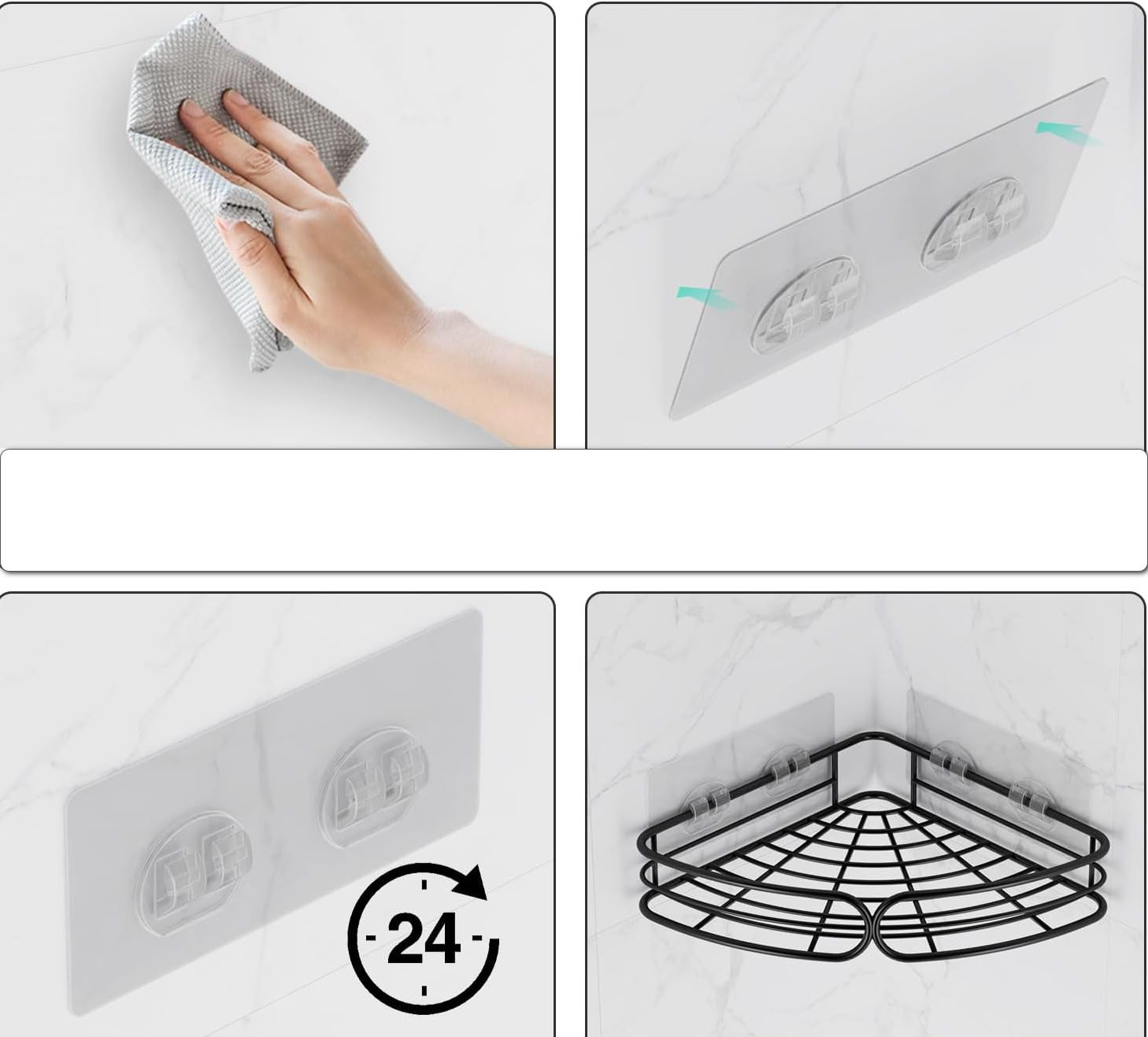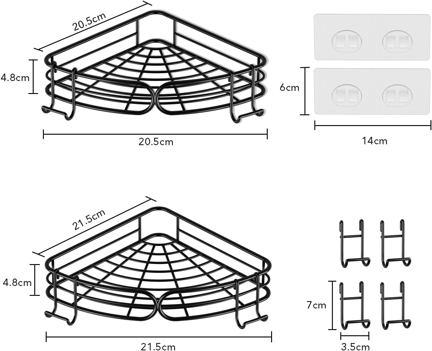 Fără găuri și instalare ușoară - Tăvile de duș de colț vin cu 2 adezivi autoadresive puternici care nu necesită găurire și sunt foarte ușor de instalat. Vă rugăm să verificați pereții potriviți din imagine. Vă rugăm să aşteptaţi cel puţin 24 de ore înainte de utilizare după instalare.