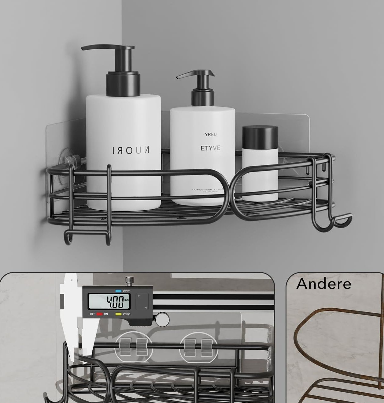 CAPACITATE MARE CU 4 CĂRȚI - Veți primi 2 pachete de tăvi de duș. Raftul de baie este dotat cu 4 cârlige mobile suplimentare, care pot fi atașate în mod liber la orice loc. Perfect pentru băi precum șampon, demachiant facial, gel de duș, perii etc., burete de baie, aparate de ras sau bile de baie.