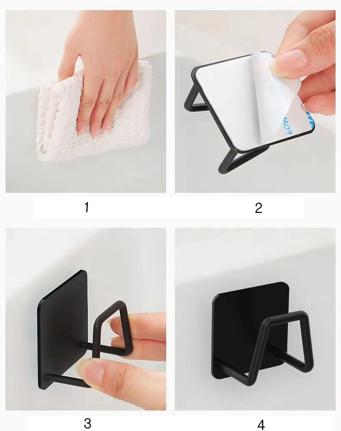 Suporti metalici, negri, pentru bureti, prosoape, set 2 bucati+ banda dublu adeziva