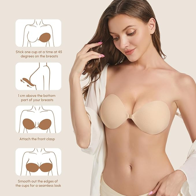 • Sutienul nostru adeziv este format din cupe moi cu un strat adeziv blând și asigură o potrivire sigură care nu cade cu ușurință