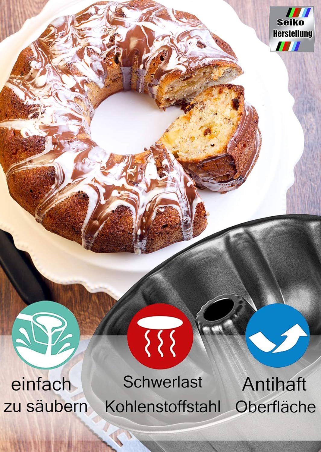 Ușor de curățat: îndepărtarea optimă a tortului și curățarea ușoară datorită acoperirii foarte bune antiadere mari. Designul ideal al formei