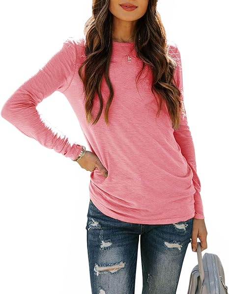 Tricou lejer de vară, cu guler rotund, mânecă lunga, roz L