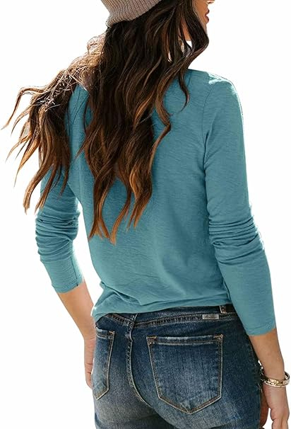 Tricou lejer de vară, cu guler rotund, mânecă lunga, turcoaz M