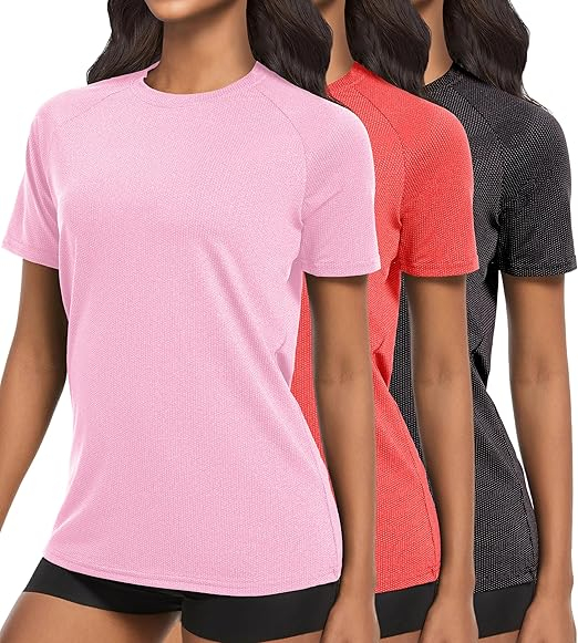 Tricouri sport respirabile, pe corp, gri/rosu/roz, 2XL, set 3 buc