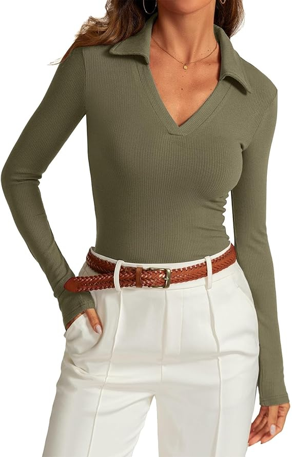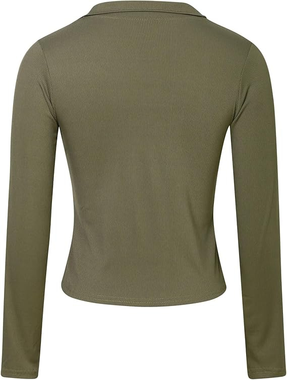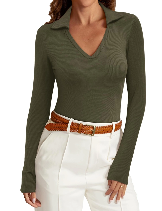 • Acest polo cu nervuri are un V-gât la modă cu guler care adaugă o notă de sofisticare ținutei tale. Designul cu nervuri oferă acest top un aspect elegant și trendy. Silueta subțire și strânsă a acestei cămăi vă accentuează curbele și creează un aspect măgulitor și feminin